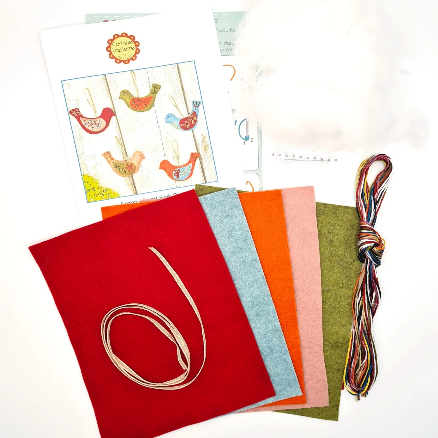 A must for all those who love our colourful feathered friends, this kit makes 5 folk embroidered birds in luscious shades. They are ornately decorated with appliqué floral inspired designs in contrasting colours and stitches. Detailed instructions will help you bring the project delightfully to life.