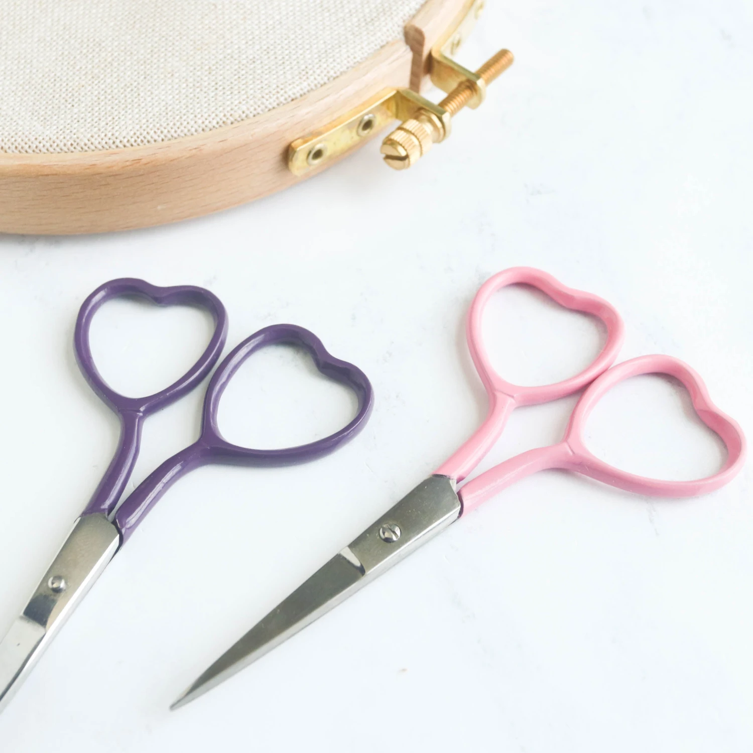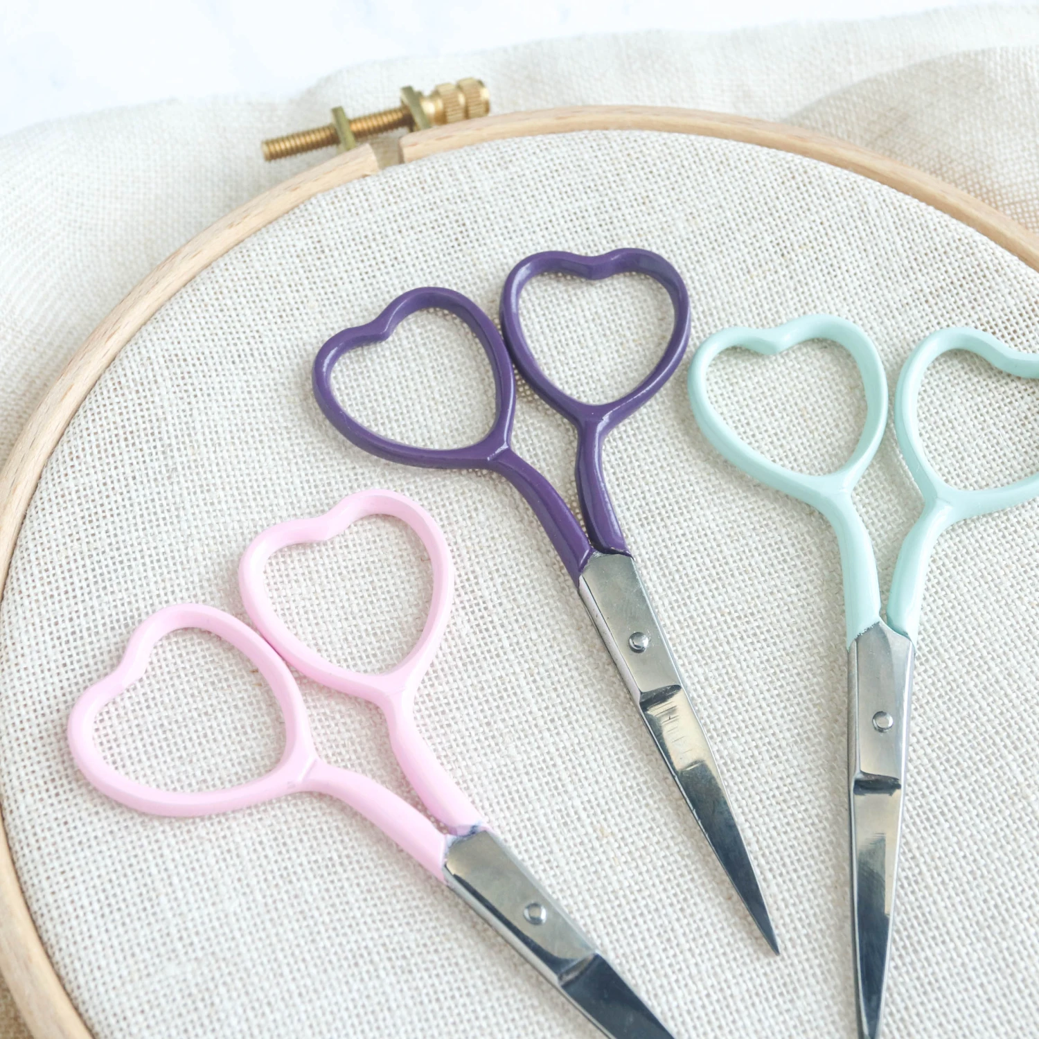 These adorable heart-shaped embroidery scissors are just the thing to add to your stitching kit! Made from stainless steel, the snips have super sharp tips that are perfect for all forms of needlework. The powder-coated handles come in five pretty colors.