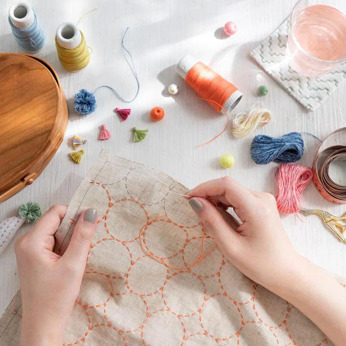 Hidamari Preprinted Sashiko Cloth – Maru-tsunagi (Circles)