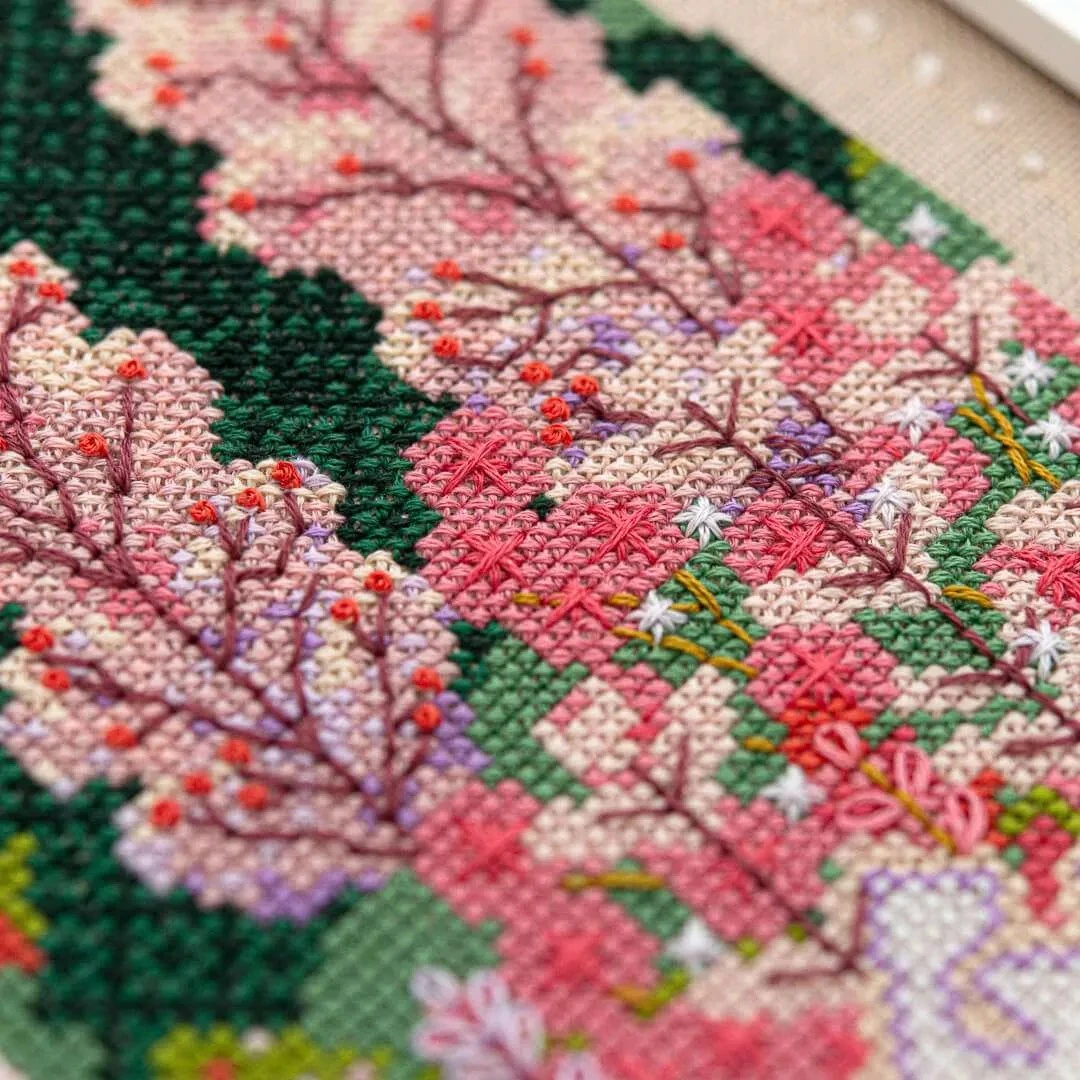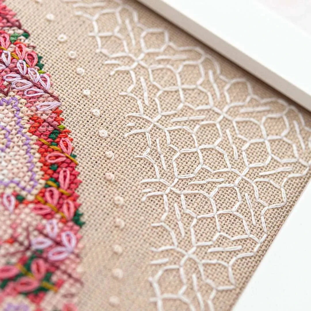 - Finished Size: 11.4 inches x 11.4 inches on 14-count Aida or stitched over-two on 28-count linen