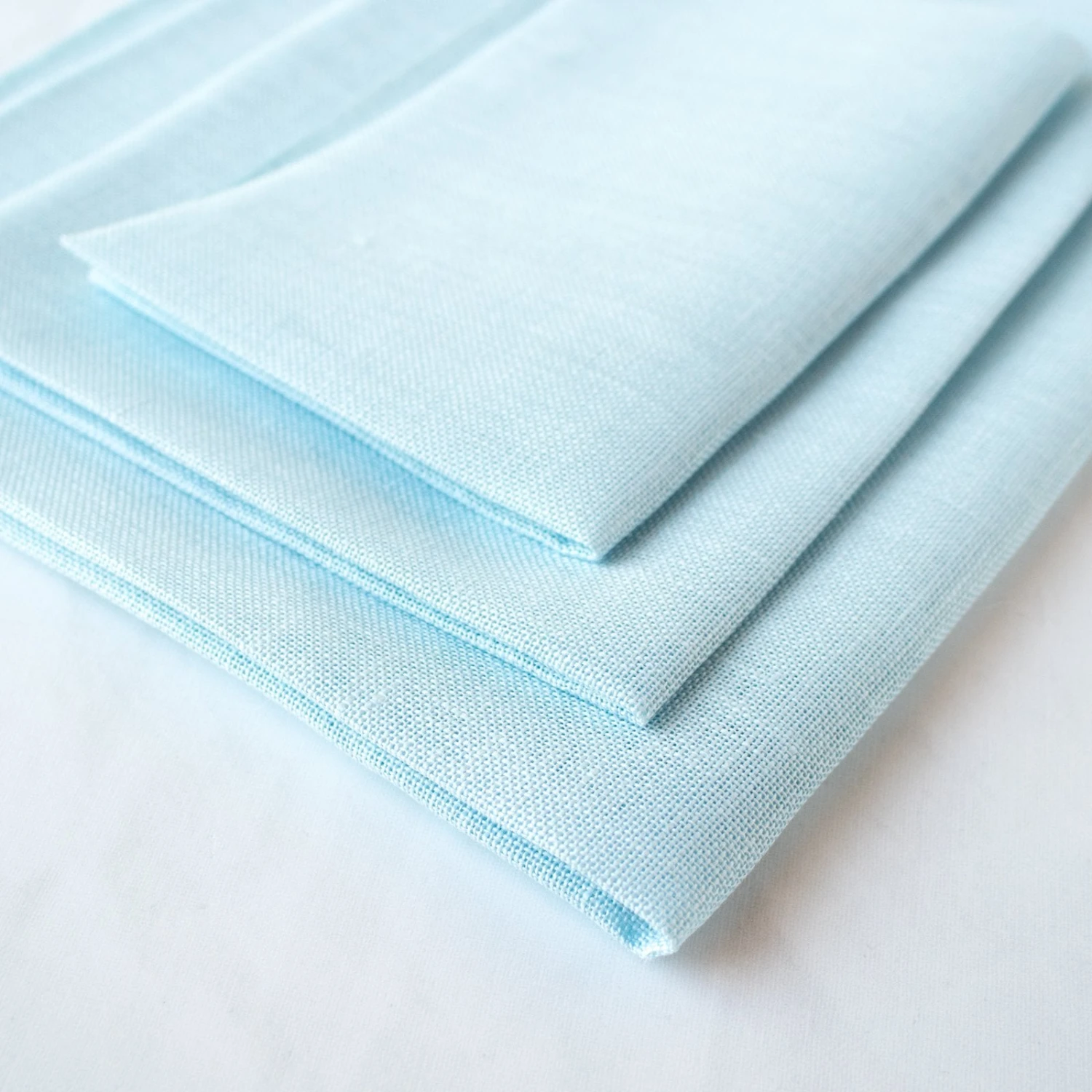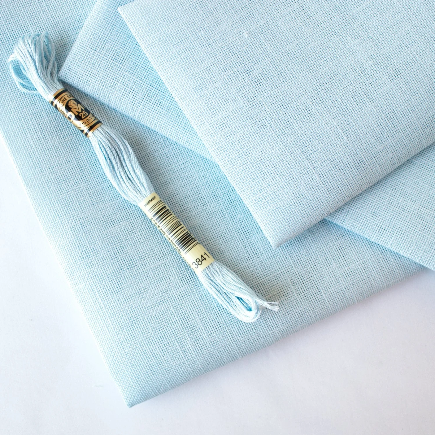 Linen has a beautiful drape and open weave that is perfect for cross stitch and embroidery. This Ice Blue linen is the equivalent of DMC embroidery floss color #3841.