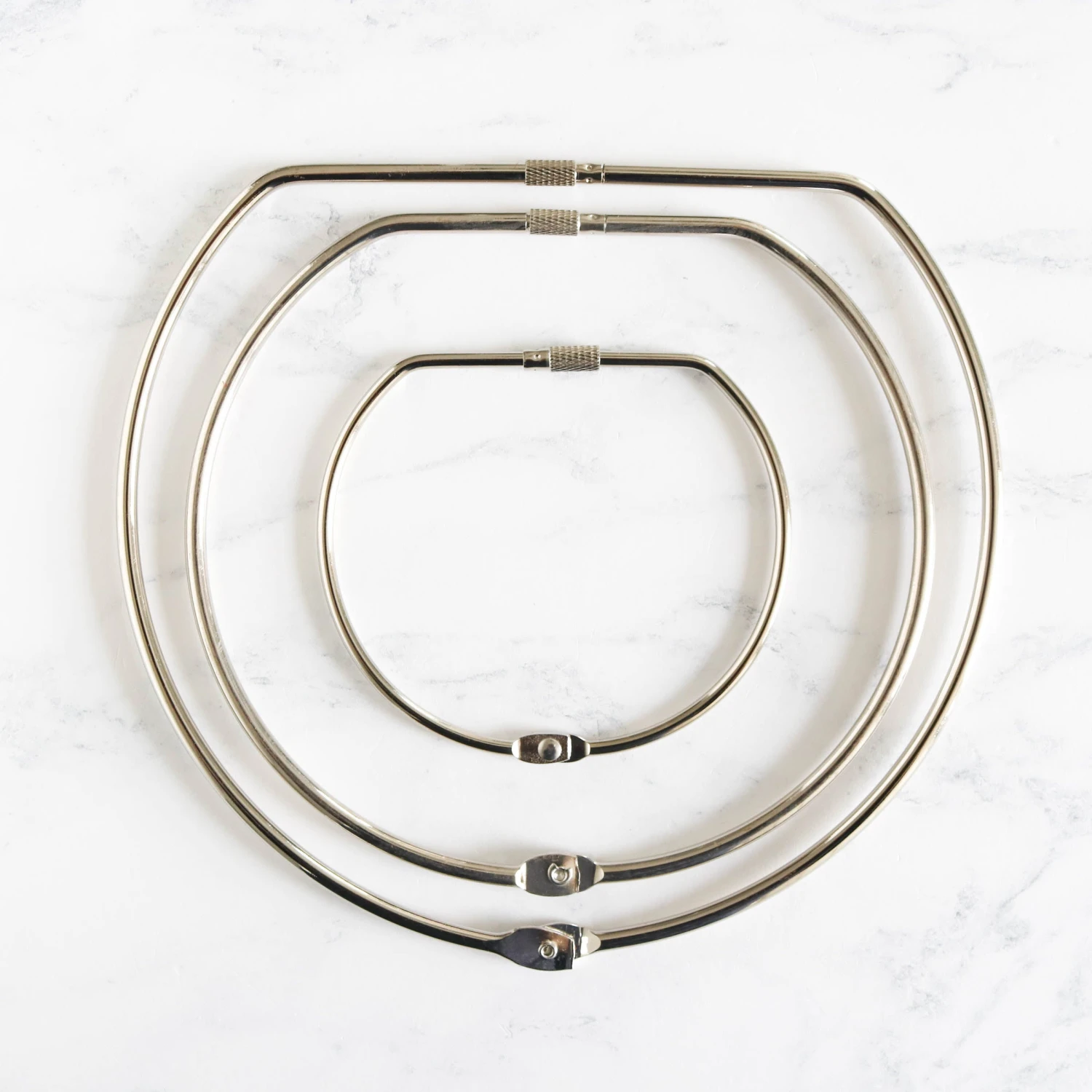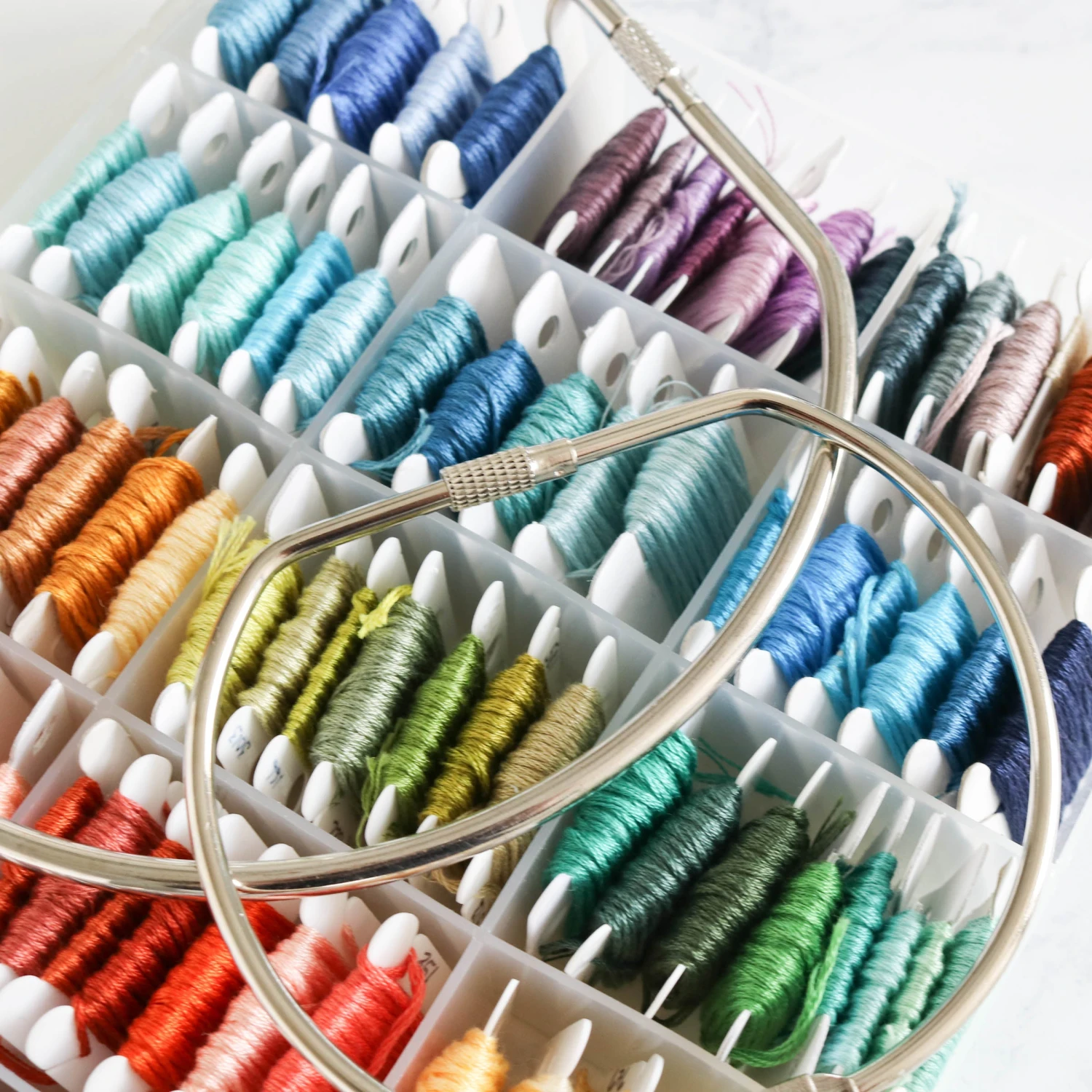 You can keep even the biggest floss stash organized with these large metal screw lock rings. Available in three sizes (4″, 6″, and 8″), the heavy duty rings have a secure screw lock so you don’t have to worry about them opening accidentally. The hinged design makes it easy to load and unload the ring.