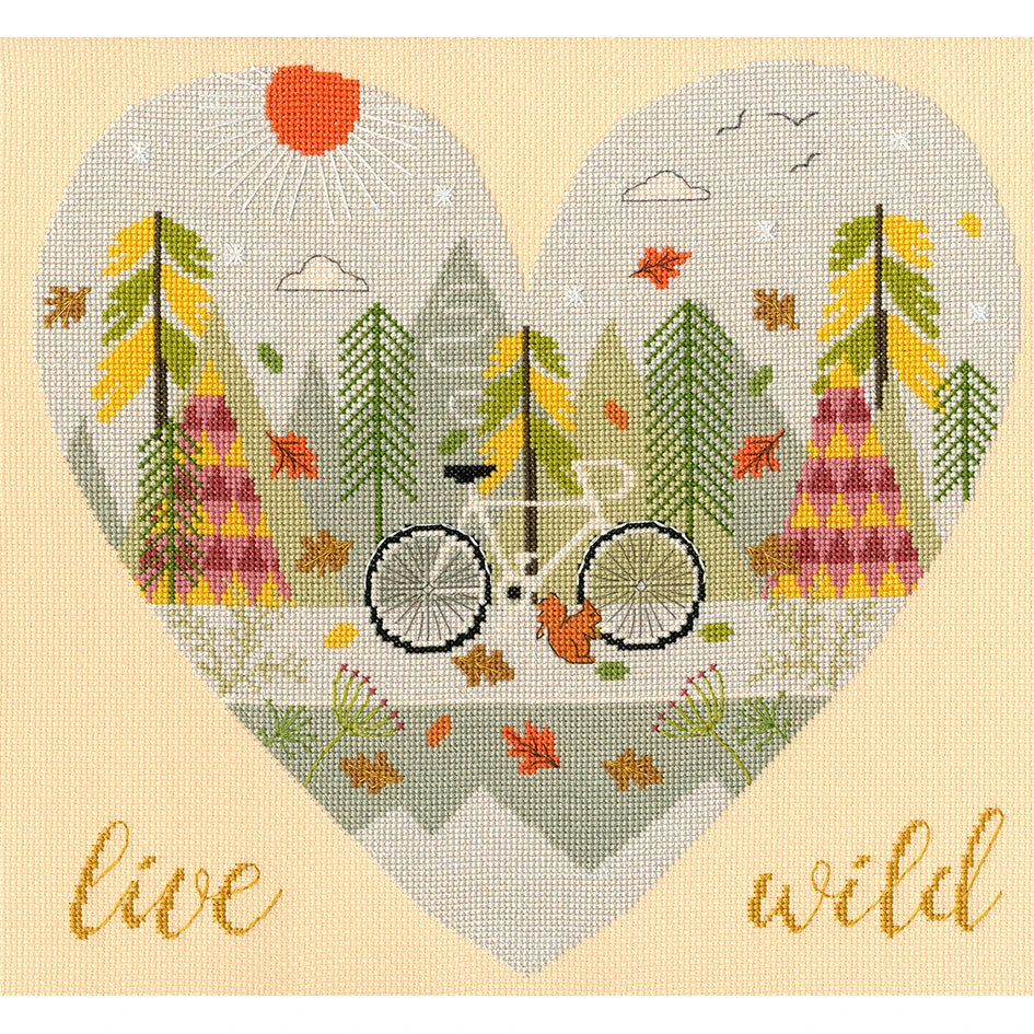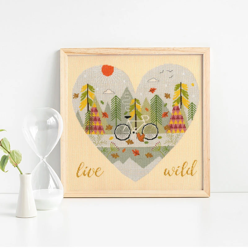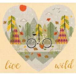 This cross stitch kit is perfect for anyone who loves the great outdoors. Stitched on 14-count ecru Aida, the design forms a heart with the words “live wild” at the bottom.