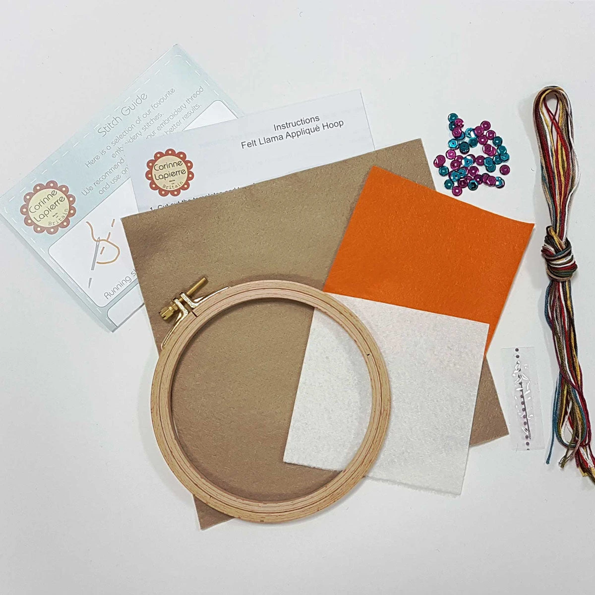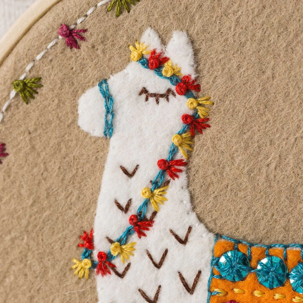 This kit has everything you need to complete a richly embroidered appliqué felt decoration of an adorable llama with an ornate blanket and floral garland. Detailed instructions are included to help you along.