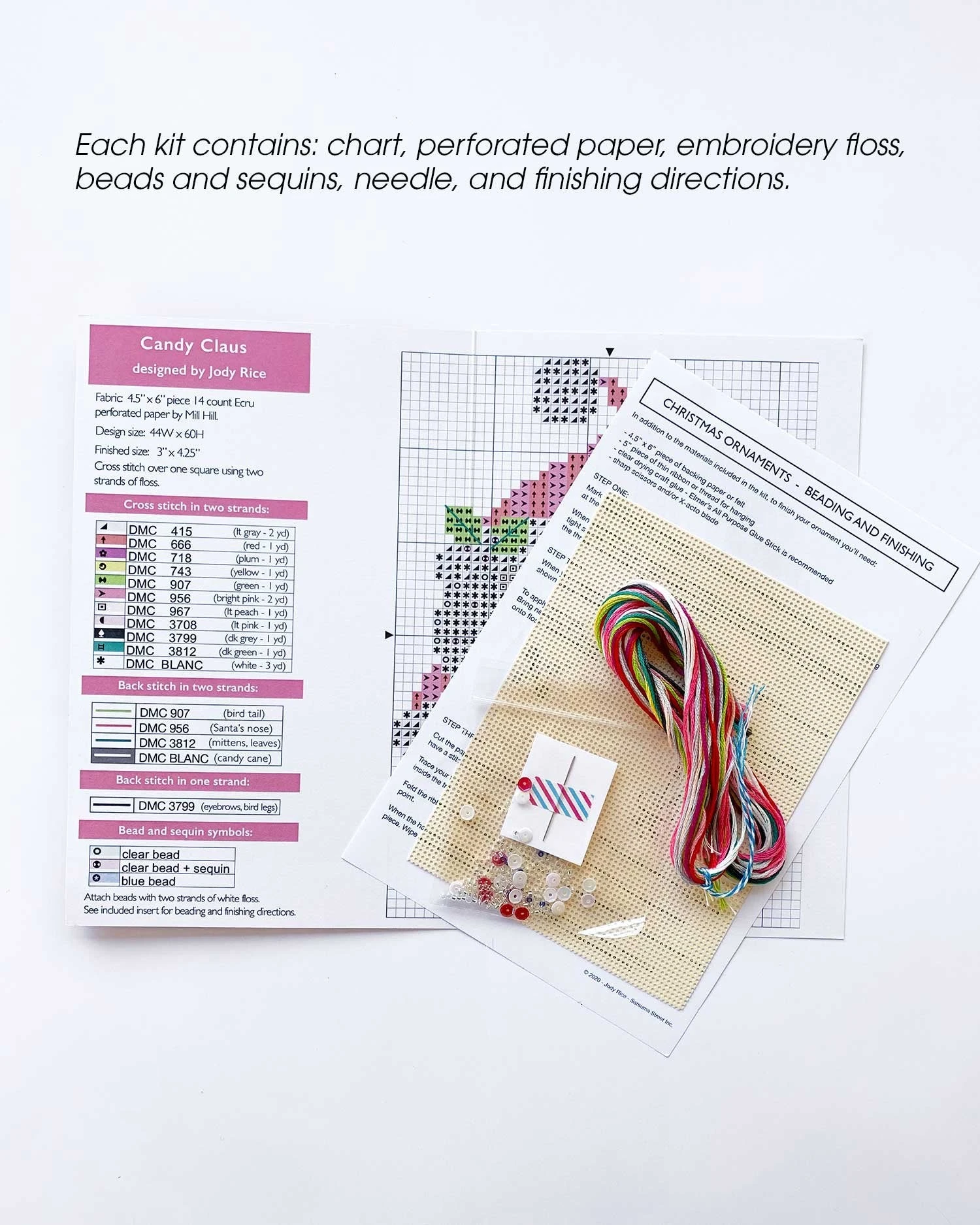 This cross stitch ornament is quick, easy, and so fun to stitch! Designed by Satsuma Street, the ornament is cross stitched on perforated paper. When you are done stitching, simply trim the paper around the design for a quick and easy finish. The kit contains all the material you need along with instructions.