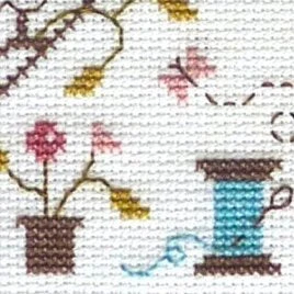 14-count Aida in Antique White (18″ x 21″) or 28-count Cashel linen in Antique White (18″ x 26″) would be a suitable alternative - Types of stitches: Cross stitch, Back stitch
