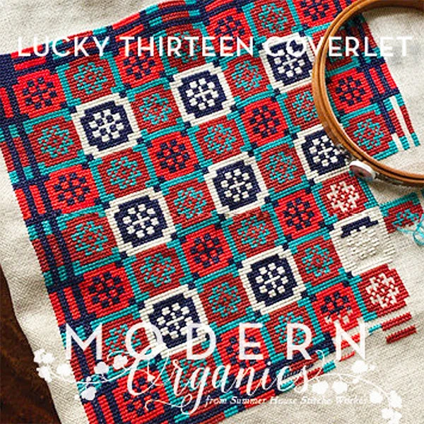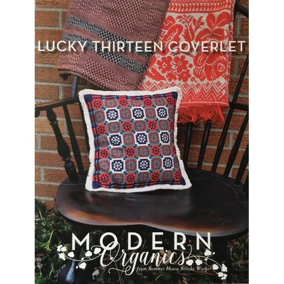 This pretty geometric cross stitch pattern by Summer House Stitche Workes is based on an antique woven coverlet. Finish it as a cushion as shown in the model, sew it into a table mat, or finish it in a frame for a graphic statement.