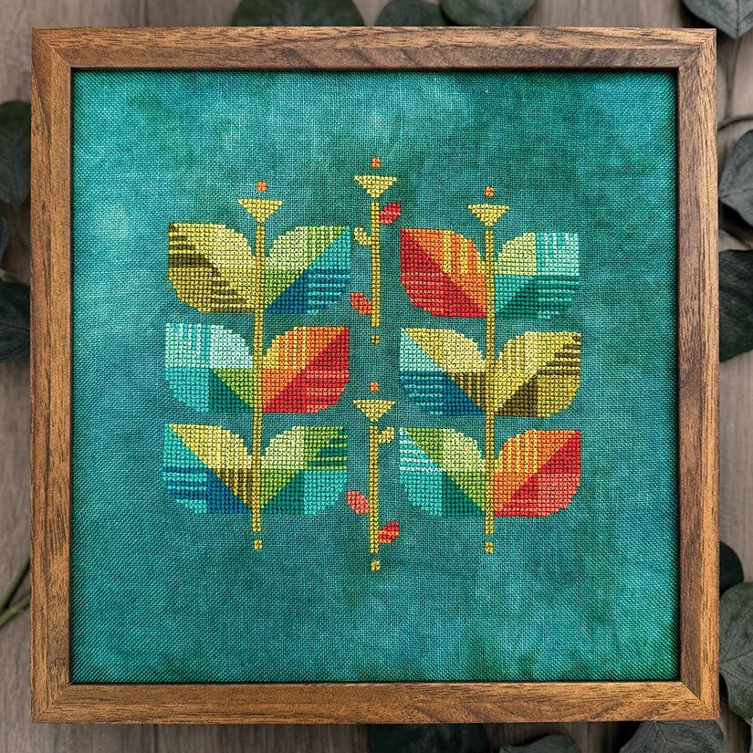 - Model was stitched on 28-count linen in Ivy by Fiber on a Whim using threads by Cosmo (DMC conversions provided)