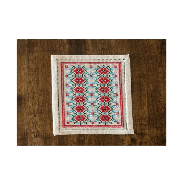 The design is stitched on a traditional cotton groundcloth that has an open weave and a soft hand. The kit includes everything you need, so it’s a perfect choice for beginners.