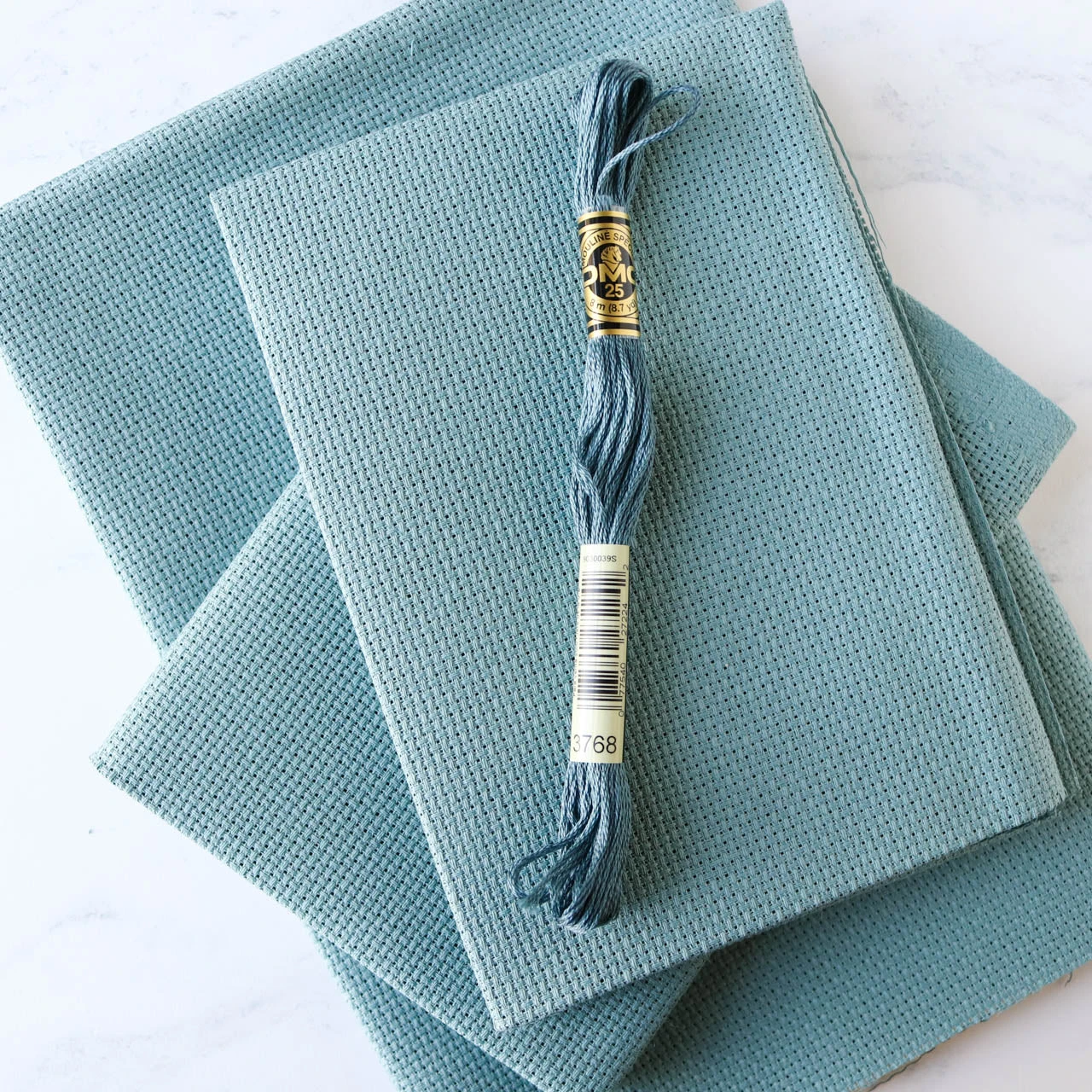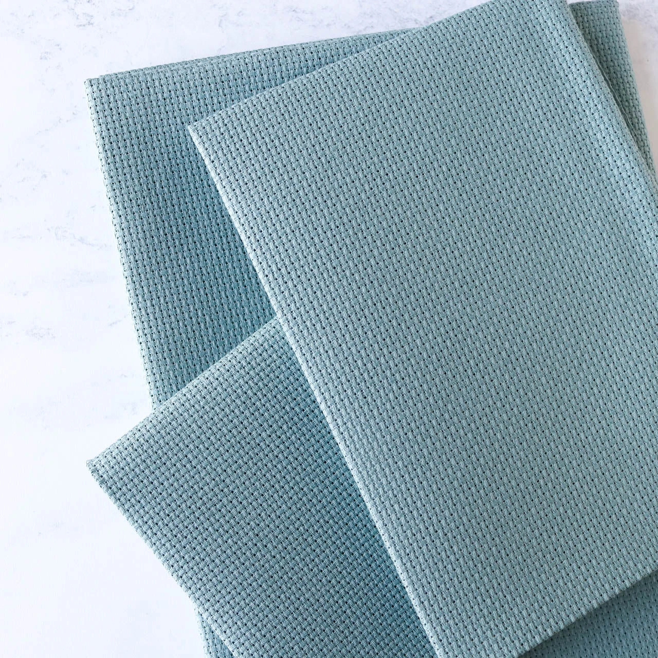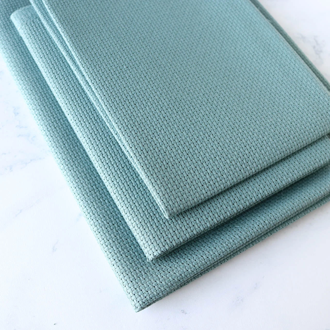 With easy-to-count holes, Aida is a great fabric for all types of cross stitch projects. This 100% cotton fabric has an even weave for perfect stitches. Evoking the waters of the Mediterranean Sea, this aida is a beautiful blue-green color similar to DMC embroidery floss color #3768.