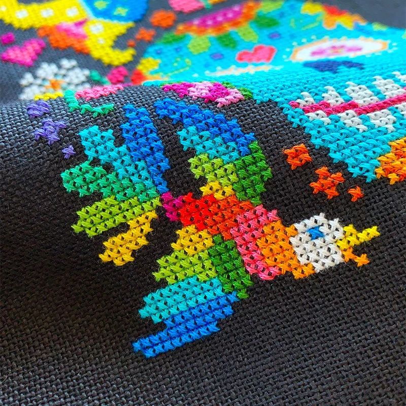 Celebrate the living and the dead with this vibrant design of calaveras, birds and flowers. Designed by Satsuma Street, this lavish project filled with detail would be the perfect special addition to your family ofrenda for Dia de los Muertos, or your modern Halloween decor.