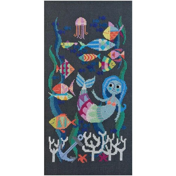 Take a dip in this colorful underwater world complete with a playful mermaid and her fishy friends! Designed by Satsuma Street, this would be a lovely addition to a children’s room or nursery. It also makes a great companion piece to the Voyage design. Shown stitched on charcoal linen, if you you’d like to use a light colored fabric, suggestions are given in the pattern to substitute floss colors in some areas of the design.