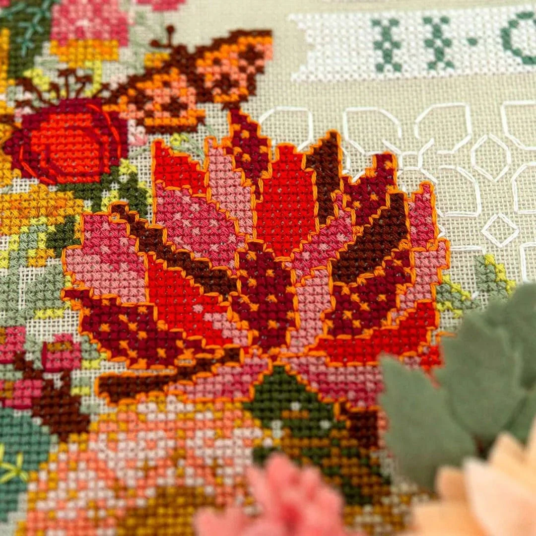 - Finished Size: 11.6 inches x 11.5 inches on 14-count Aida or stitched over-two on 28-count linen