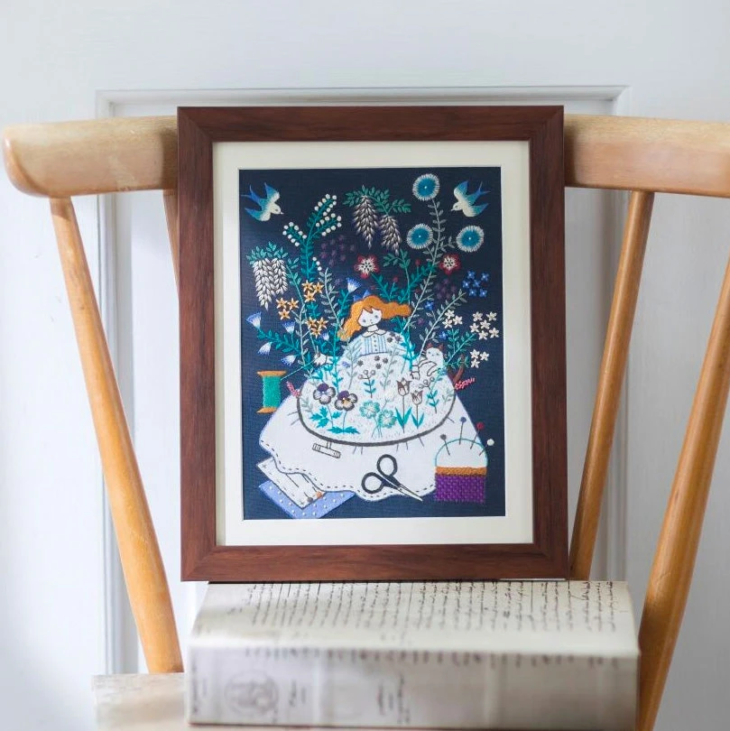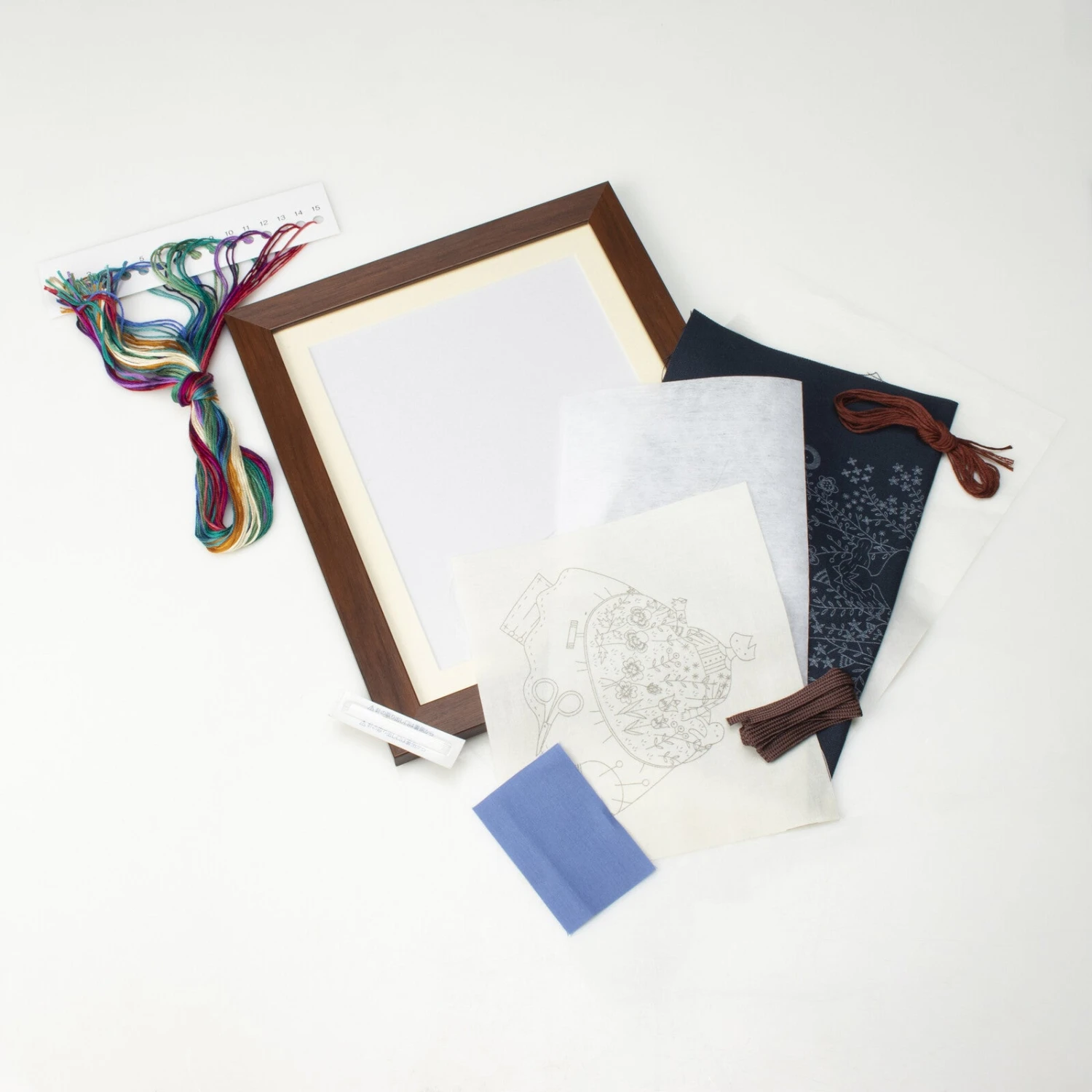 This magical hand embroidery kit was designed by acclaimed Japanese embroidery artist Hiroko Ishii, to commemorate her 20th year as an artist. The kit comes with everything you need, including a wooden frame for finishing the piece.