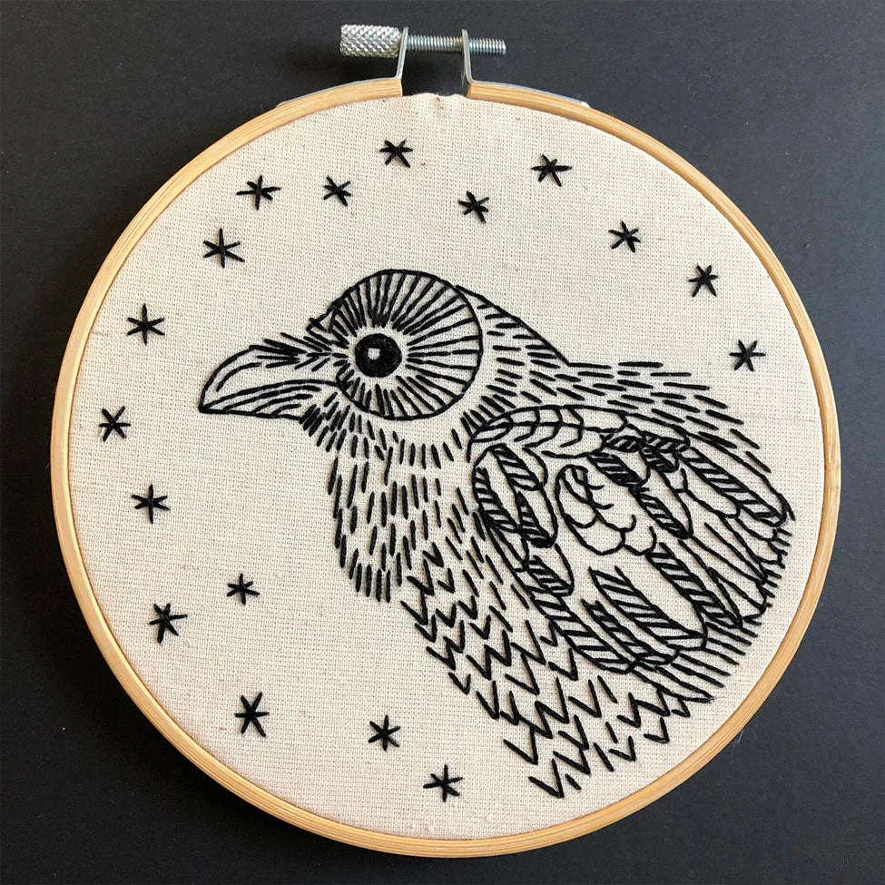 There’s nothing “common” about the Common Raven, just as there is nothing common about this gorgeous hand embroidery kit by Nova Scotia based Hook, Line & Tinker. Taking its name from the poem by Edgar Allan Poe, the design features only backstitch and a small amount of satis stitch, so it’s perfect for beginners.