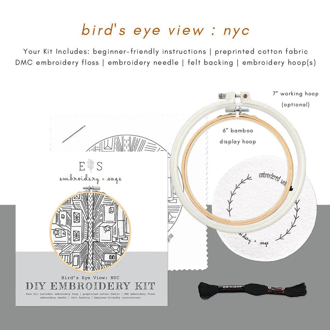 Stitch the city you love with this unique architecture-inspired embroidery kit by Embroidery + Sage. The kit comes with everything you need to complete a modern piece of stitched art that you can hang on your wall or to give to someone special.