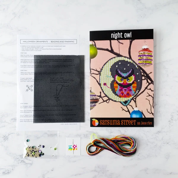 Designed by Satsuma Street, the kit includes all the material you need to make one perforated paper ornament. Perforated paper is easy to stitch on, and this is a perfect kit if you have been wanting to try working with beads in your cross stitch. Detailed instructions are included.