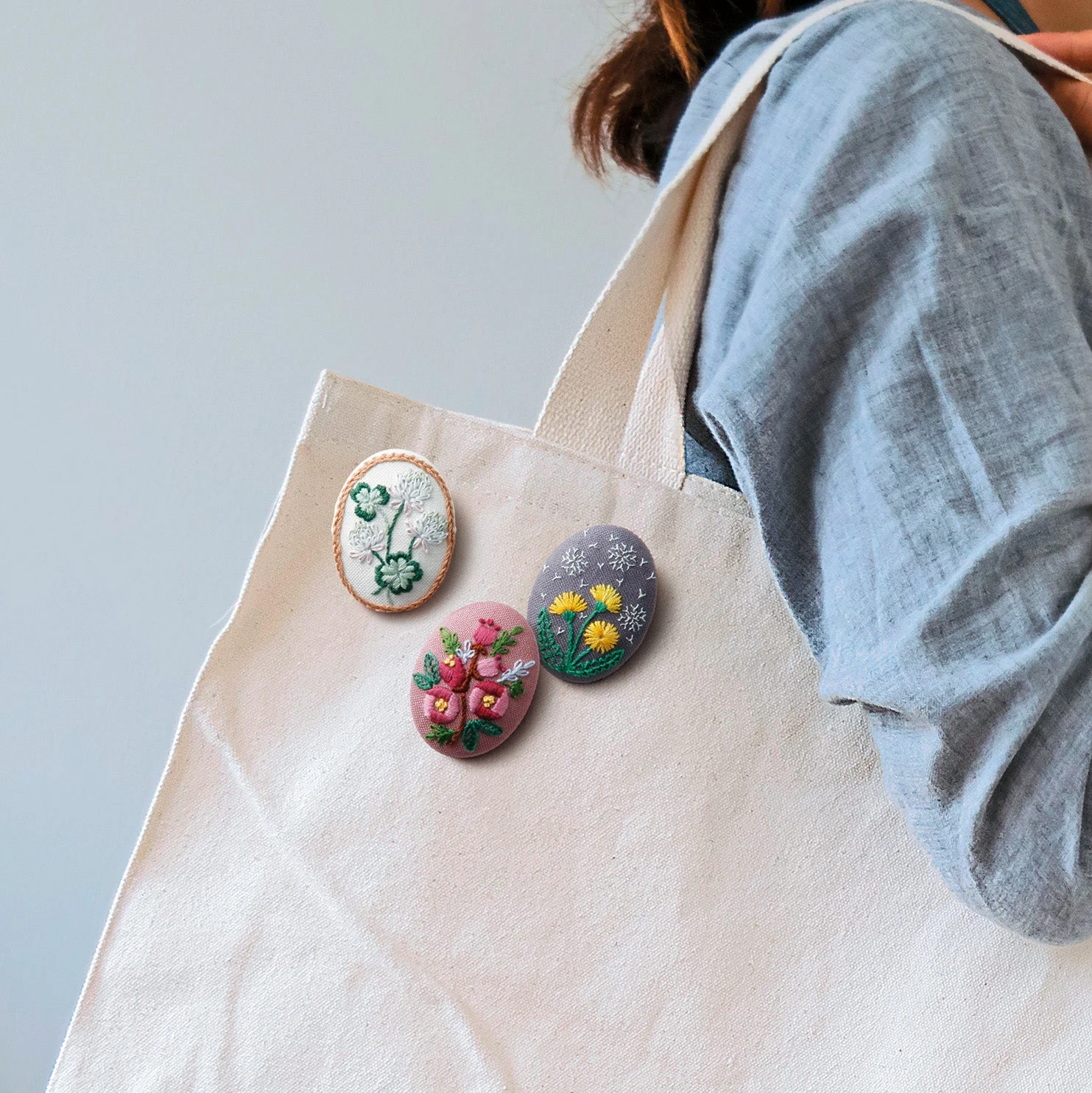 The kit includes everything you need, including the brooch hardware, and the pattern is pre-printed on the fabric, so you can start stitching right away.