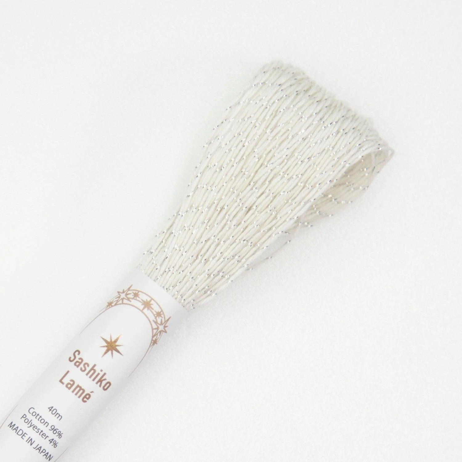 Add some sparkle to your stitching with this beautiful Lamé Sashiko Thread from Olympus of Japan. The base fiber is made from cotton that has a touch of metallic sparkle throughout.