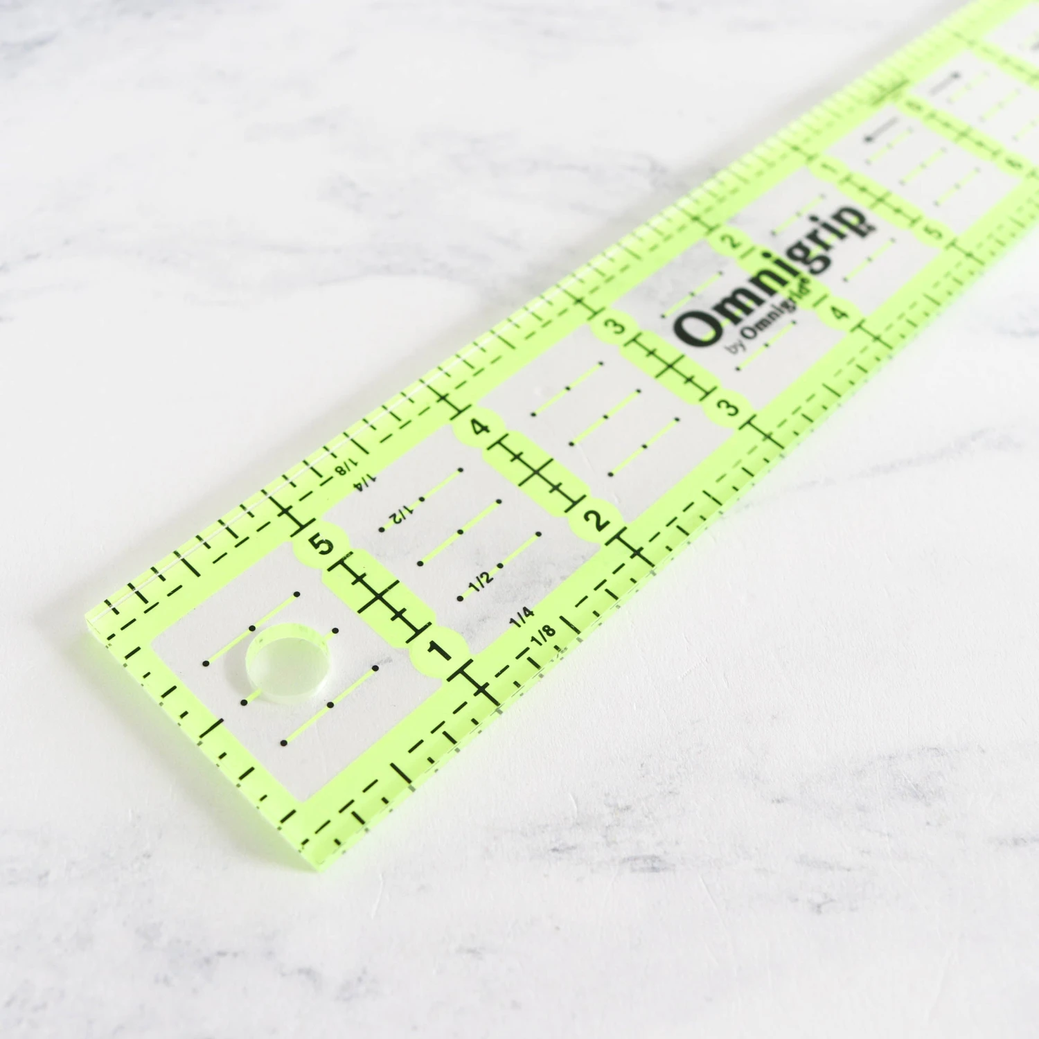 You will find yourself reaching for this super useful clear acrylic ruler all the time. From cutting fabric to paper, the markings are easy to read and the clear acrylic lets you see what you’re cutting. Highlighted edges make the ruler extra easy to use.
