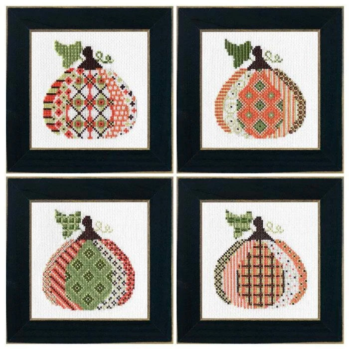 This kit includes material for four separate pumpkin designs. Each pumpkin measures approximately 4″ x 4.25″. The designs are also available as individual kits.