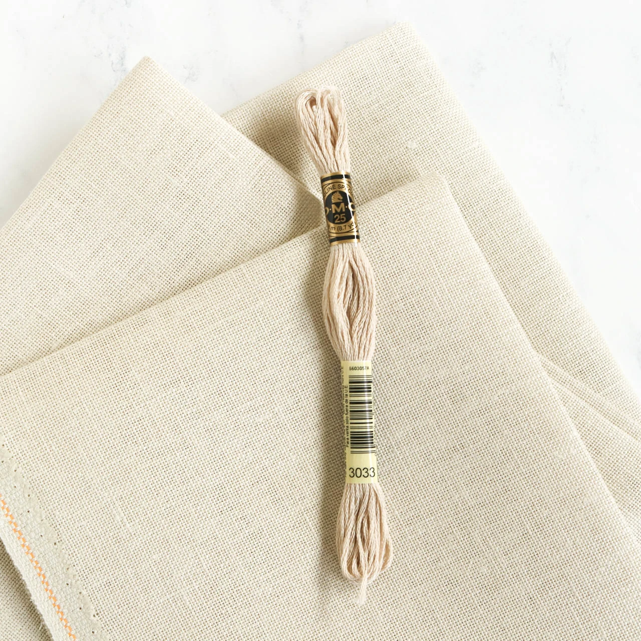 Linen has a beautiful drape and open weave that is perfect for cross stitch and embroidery. This Platinum linen a lovely warm neutral color that is similar to DMC embroidery floss color #3033.