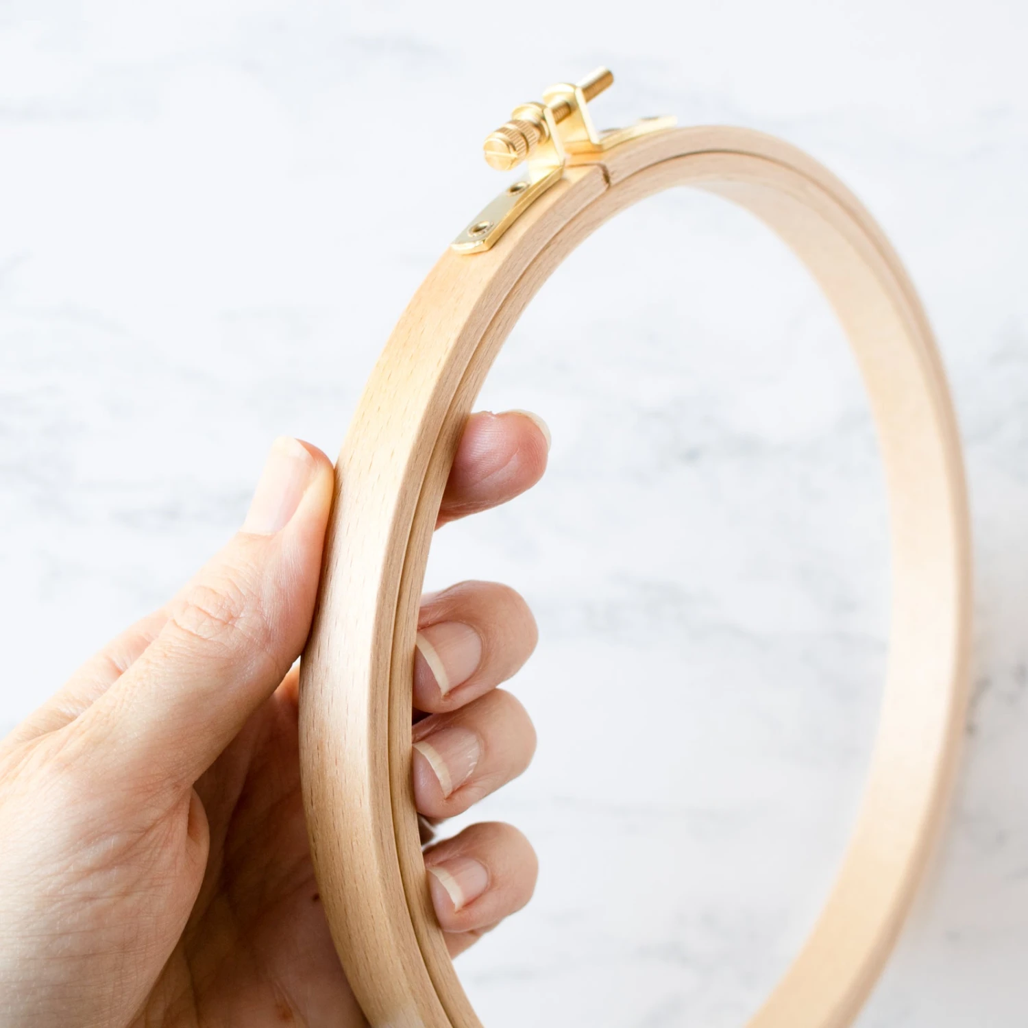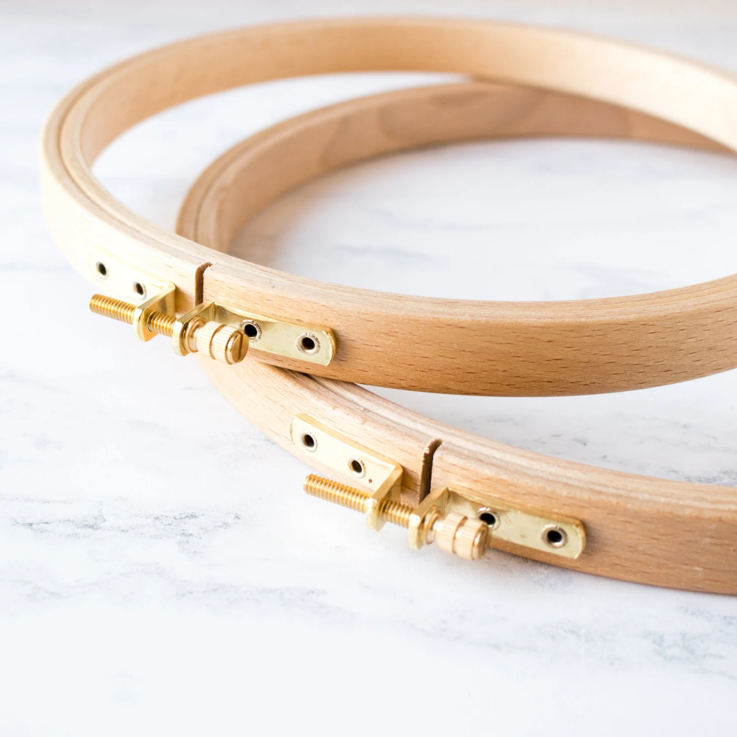 Finely crafted in Europe from beechwood, these polished hoops are perfectly smooth, with no gaps or snags, and the edges are rounded for a comfortable grip. Solid brass screw keeps the hoop and your fabric tight.
