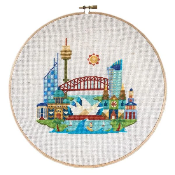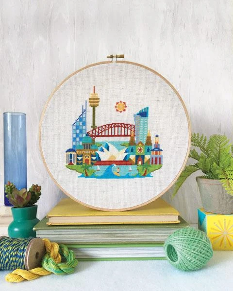 Part of the popular Pretty Little Location series by Satsuma Street, this cross stitch pattern of Sydney, Australia features all the important landmarks including the Opera House, Harbour Bridge, Centrepoint tower, and more popular landmarks. The beautiful harbor and a little surfer complete the scene.
