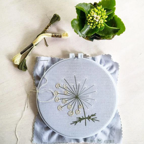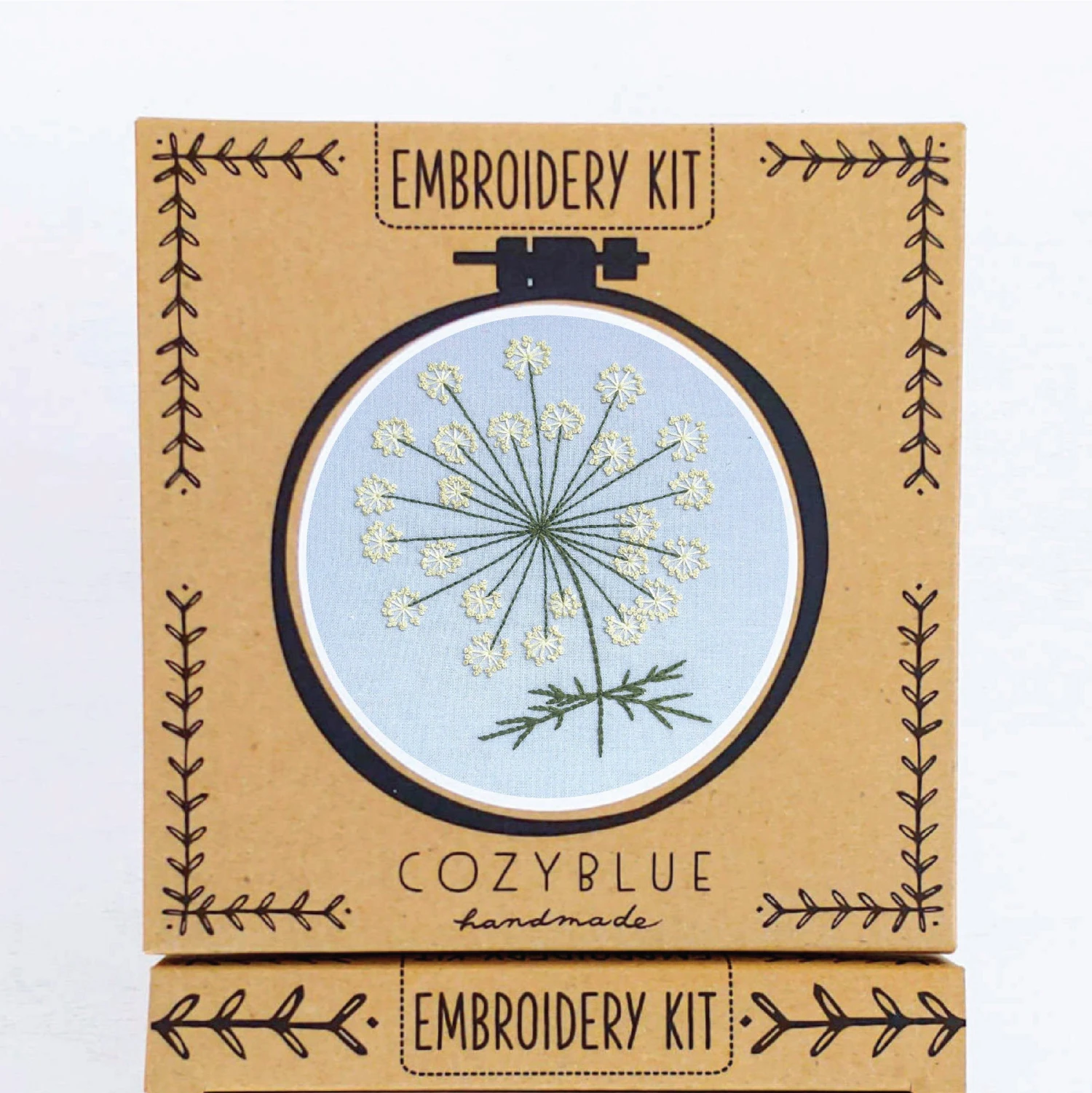 This hand embroidery kit is based on the hand illustrations by North Carolina-based artist Liz Stiglets of cozyblue. Her popular designs are inspired by home, family, nature, and life’s simple wonders.