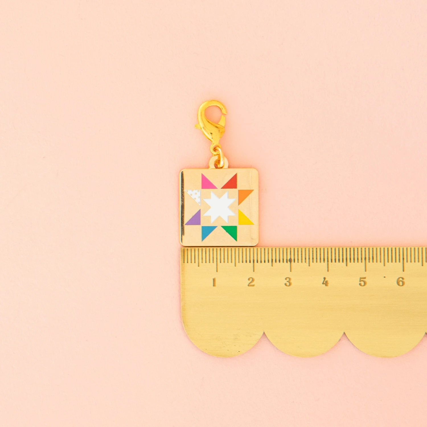 This colorful quilt block zipper charm by Sarah Hearts is a little love letter to patchwork and handcraft. With its bold rainbow star design and gold finish, it’s a joyful way to brighten up your project bag, zipper pouch, or scissor case—perfect for quilters, stitchers, and anyone who loves creative details.