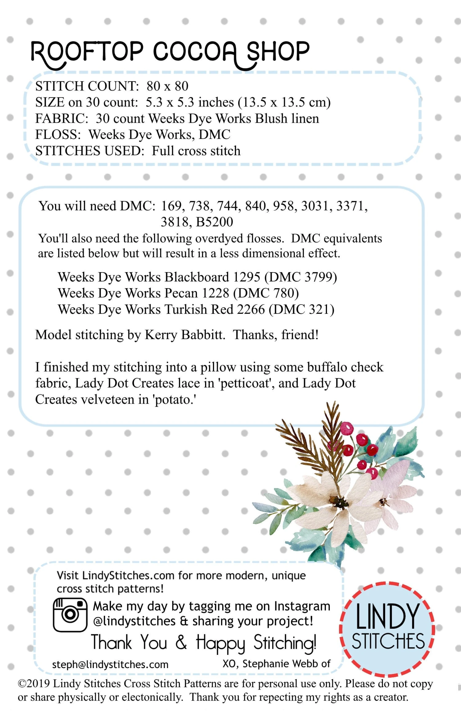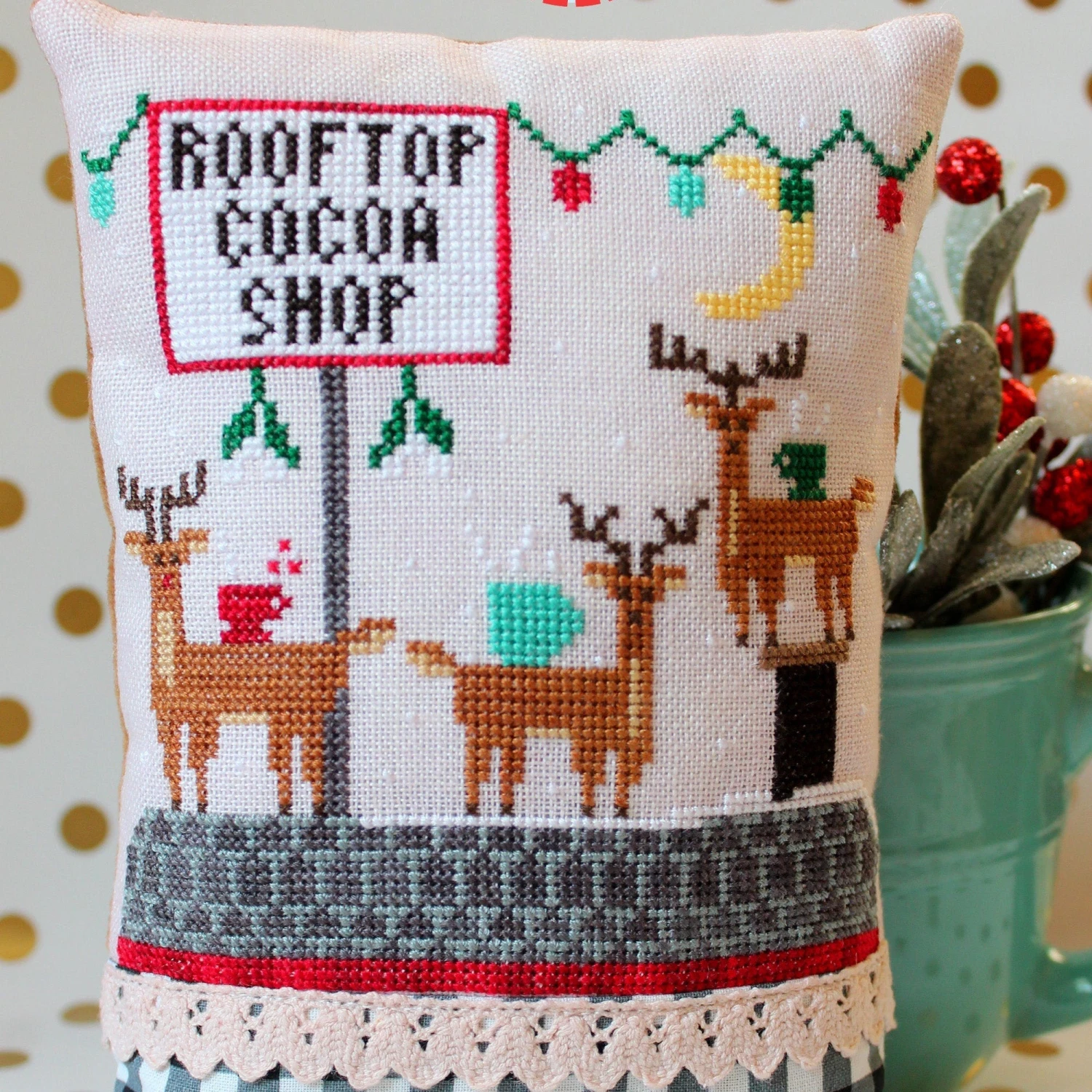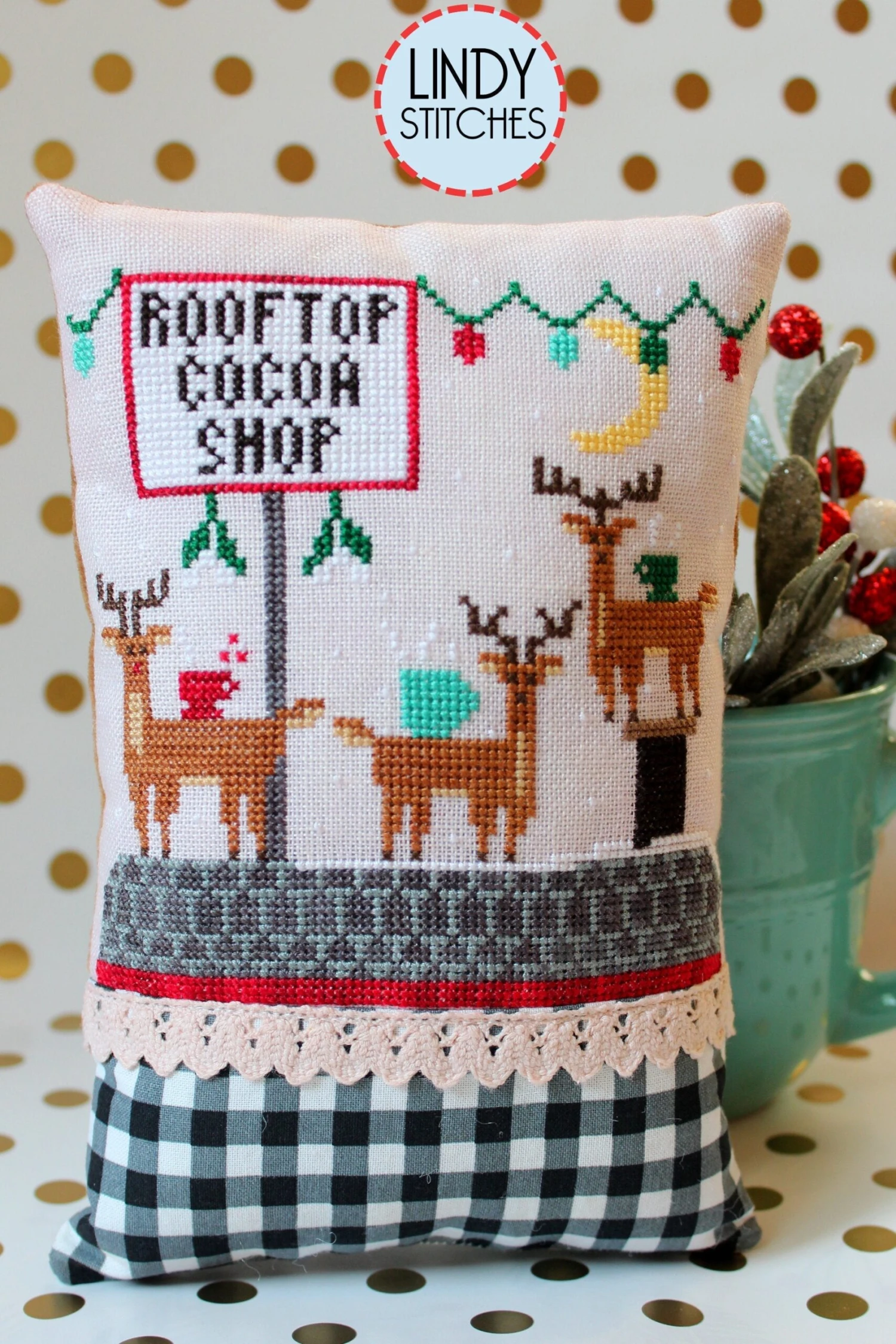 This festive cross stitch design by Lindy Stitches is available as a printed hardcopy pattern.