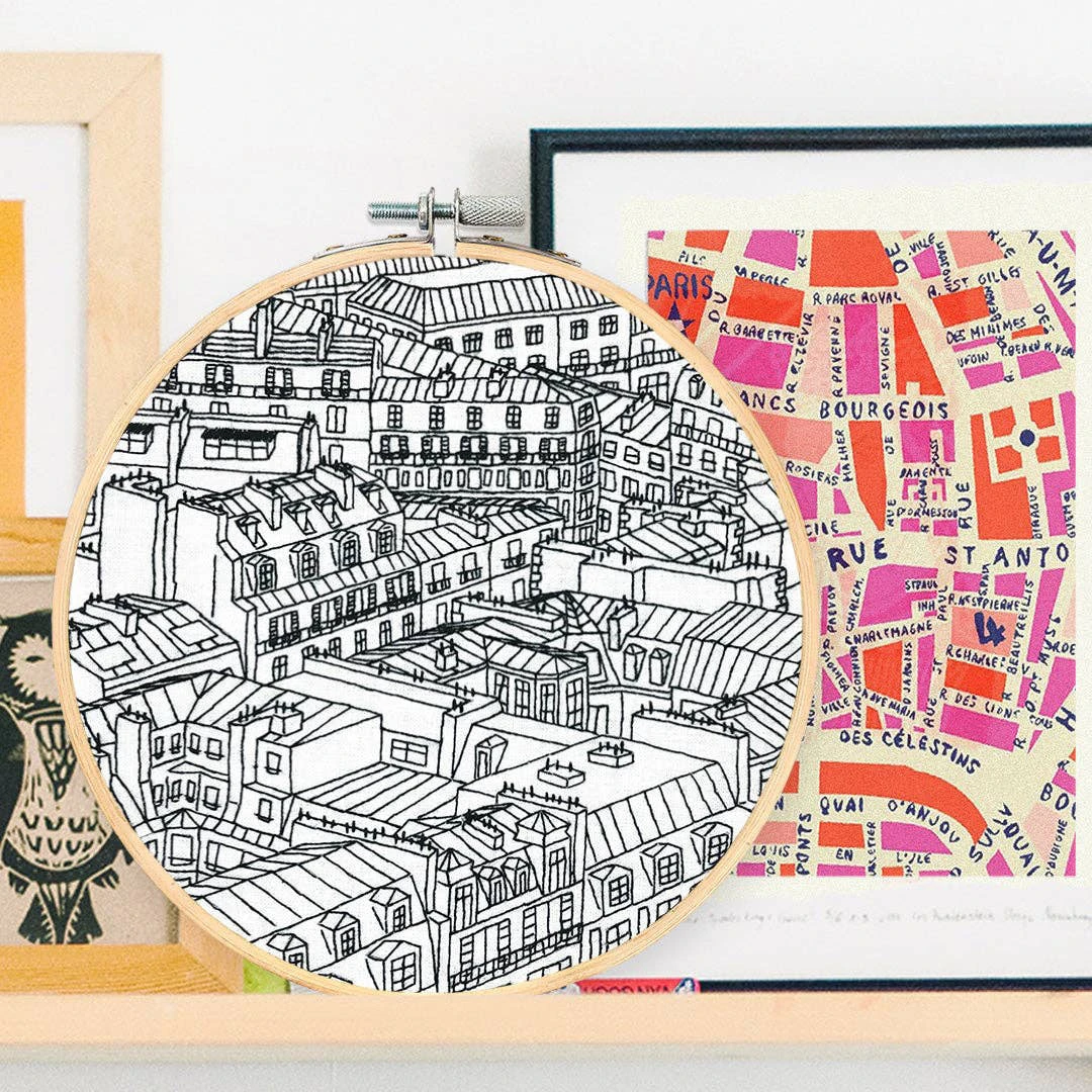 Stitch the city you love with this unique architecture-inspired embroidery kit by Embroidery + Sage. The kit comes with everything you need to complete a modern piece of stitched art that you can hang on your wall or to give to someone special.