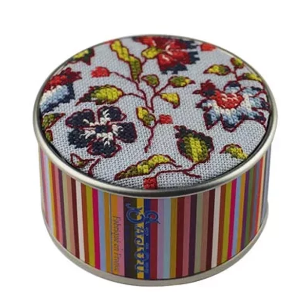 - Round tin box (approx. 2.75″ diameter x 1.5″ high)