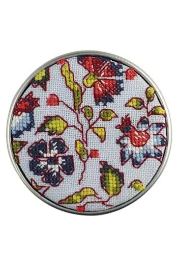 Inspired by a richly layered indienne textile, the Blue Bangalore design of this cross stitch kit by Maison Sajou evokes the elegance of old-world chintz with bold blossoms and intricate vines. The deep navy and crimson tones pop against a soft blue linen background, making this a showstopping piece to stitch and display.
