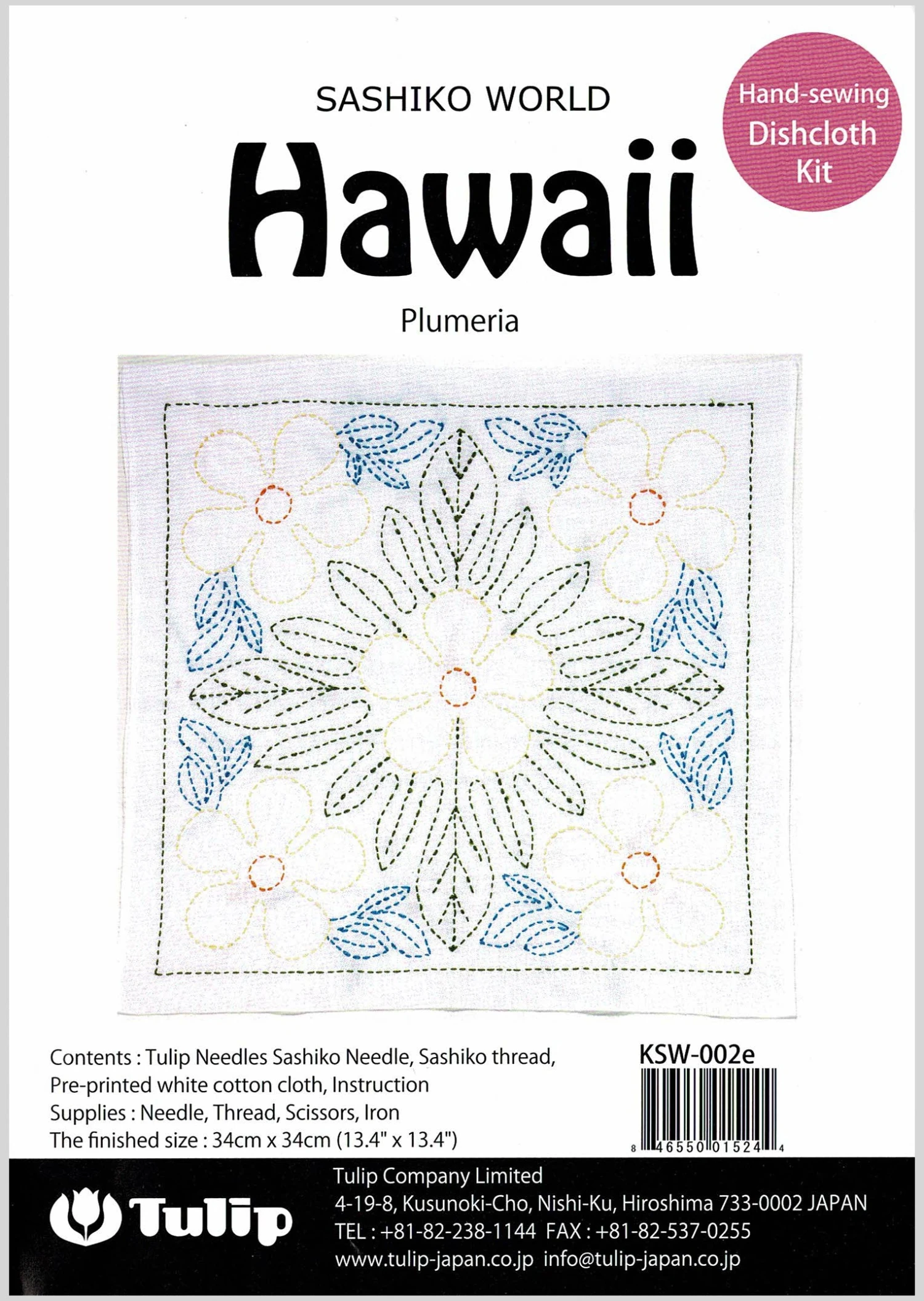 Travel the world with Sashiko! This kit by Tulip of Japan is part of a series celebrating different regions of the world in colorful, easy-to-do stitches. This design was inspired by the lush flora of Hawaii.