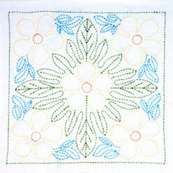 At just over 13 inches square, the cloth can be used as a dishcloth, finished as a pillow or tote, or combined with other panels as part of a larger project.