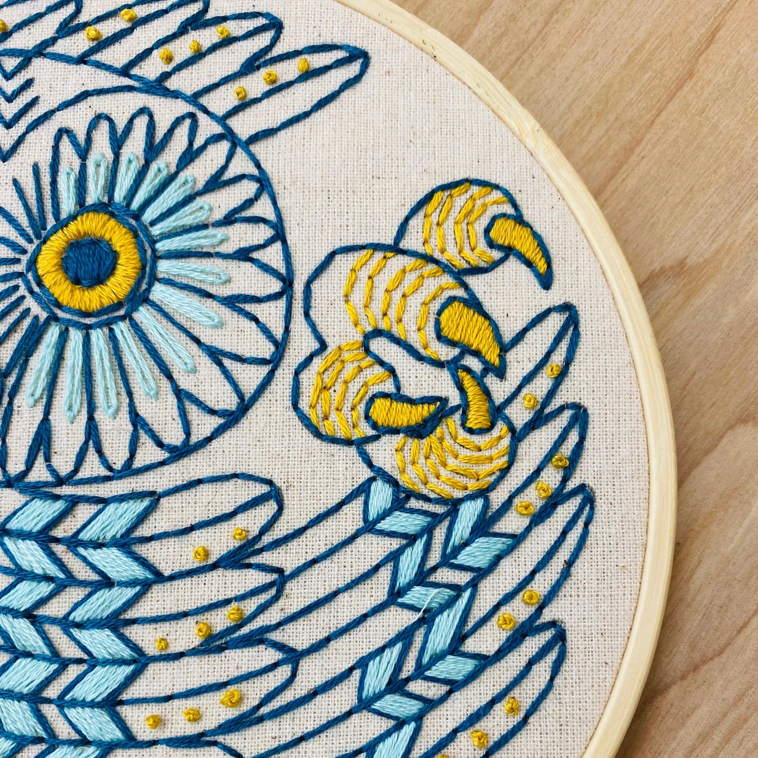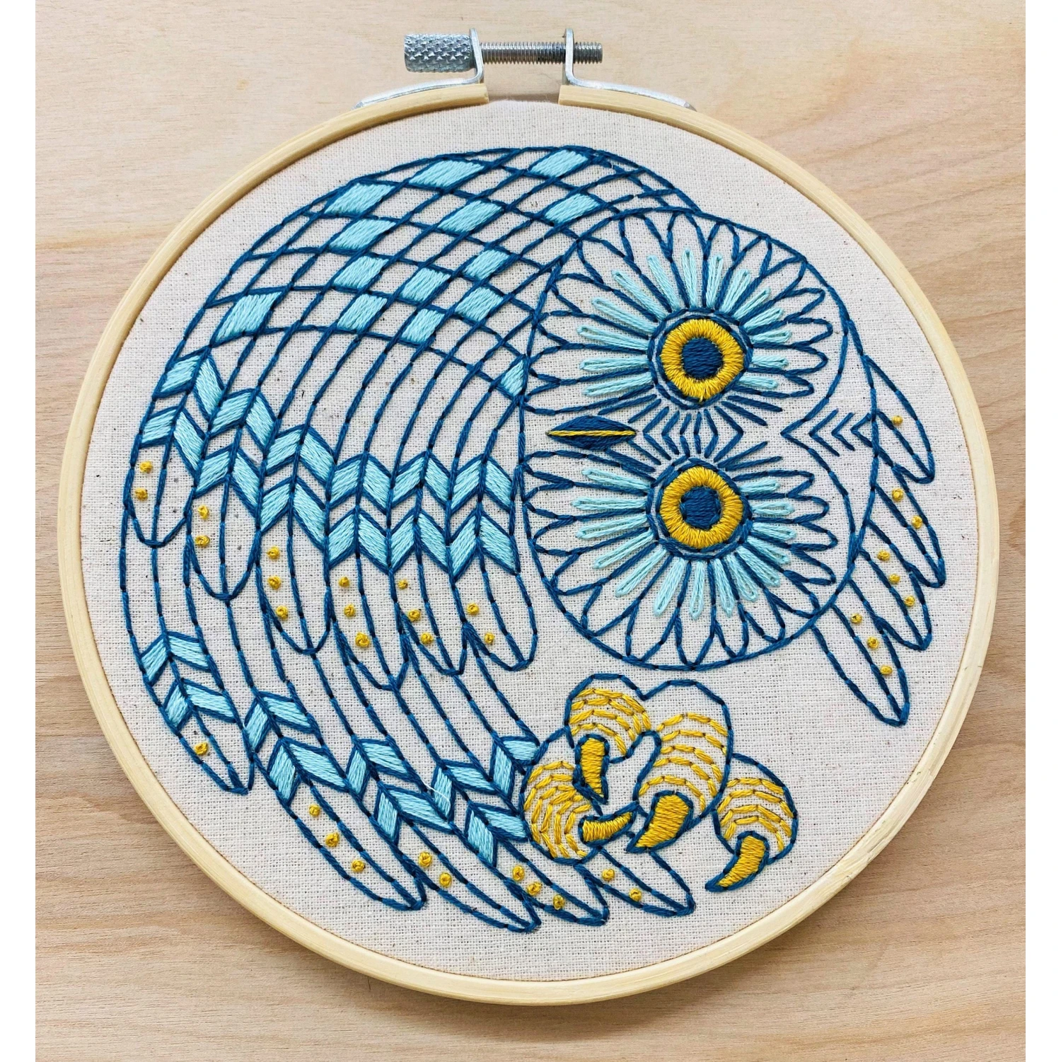 This Saw Whet owl hand embroidery kit is part of series of five owl designs create by Nova Scotia based Hook, Line & Tinker. Each design features a bold, tonal color palette and lots of texture from a range of stitches.Â
