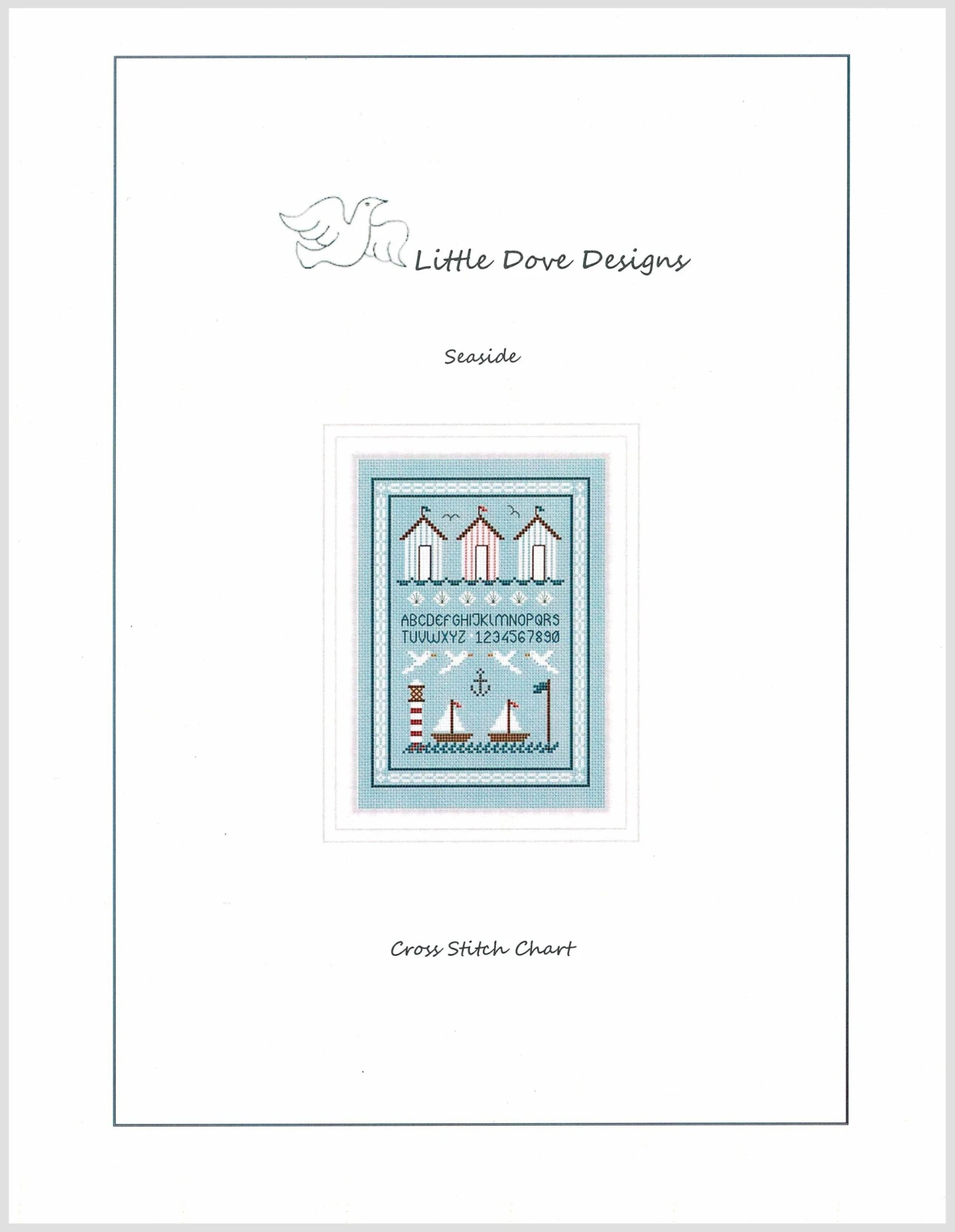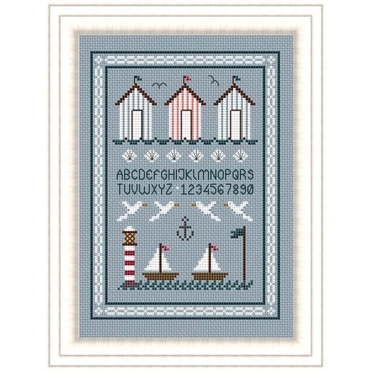 Beach huts and sailboats are featured in this summery cross stitch pattern by UK-based Little Dove Designs. The sampler style pattern also includes a backstitch alphabet.