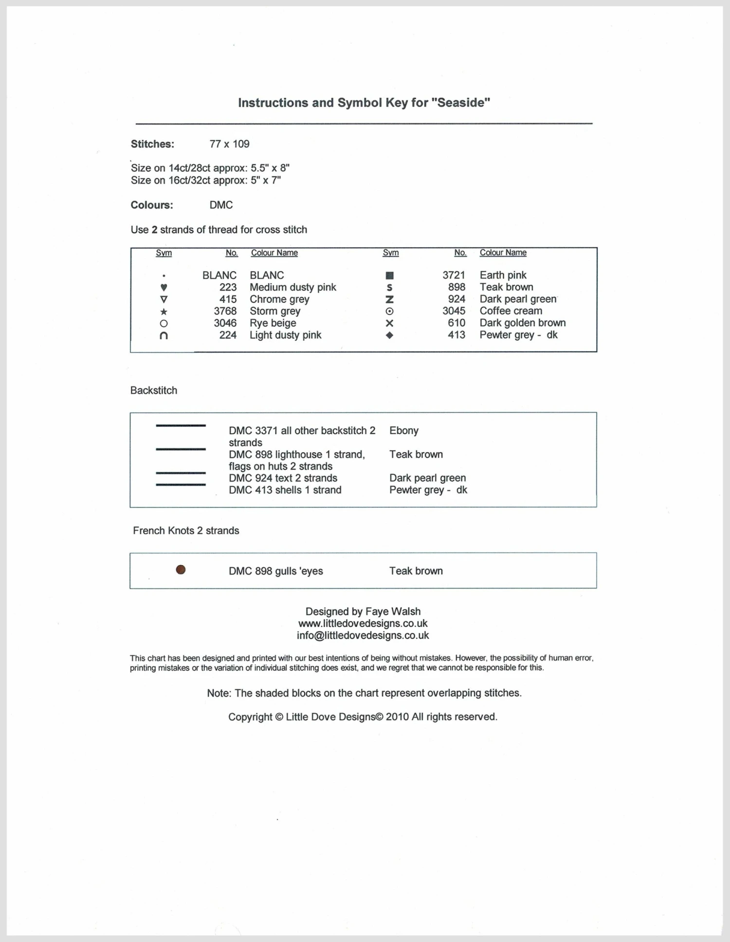 - Stitching area: 77 stitches wide x 109 stitches high