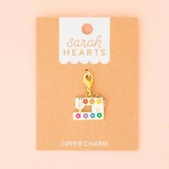 This cheerful sewing machine zipper charm by Sarah Hearts is a perfect nod to your love of stitching. Decorated with rainbow flowers and finished in shiny gold, it adds a playful touch to any project bag, zipper pouch, or notions case. A must-have for makers who love all things handmade.
