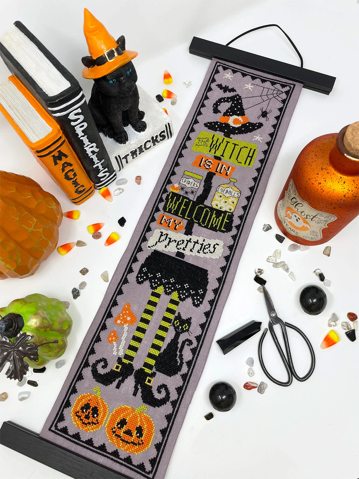 The witch is in! Stitch this fun Halloween cross stitch pattern by Tiny Modernist. The completed piece can be finished into a banner (finishing instructions included!).
