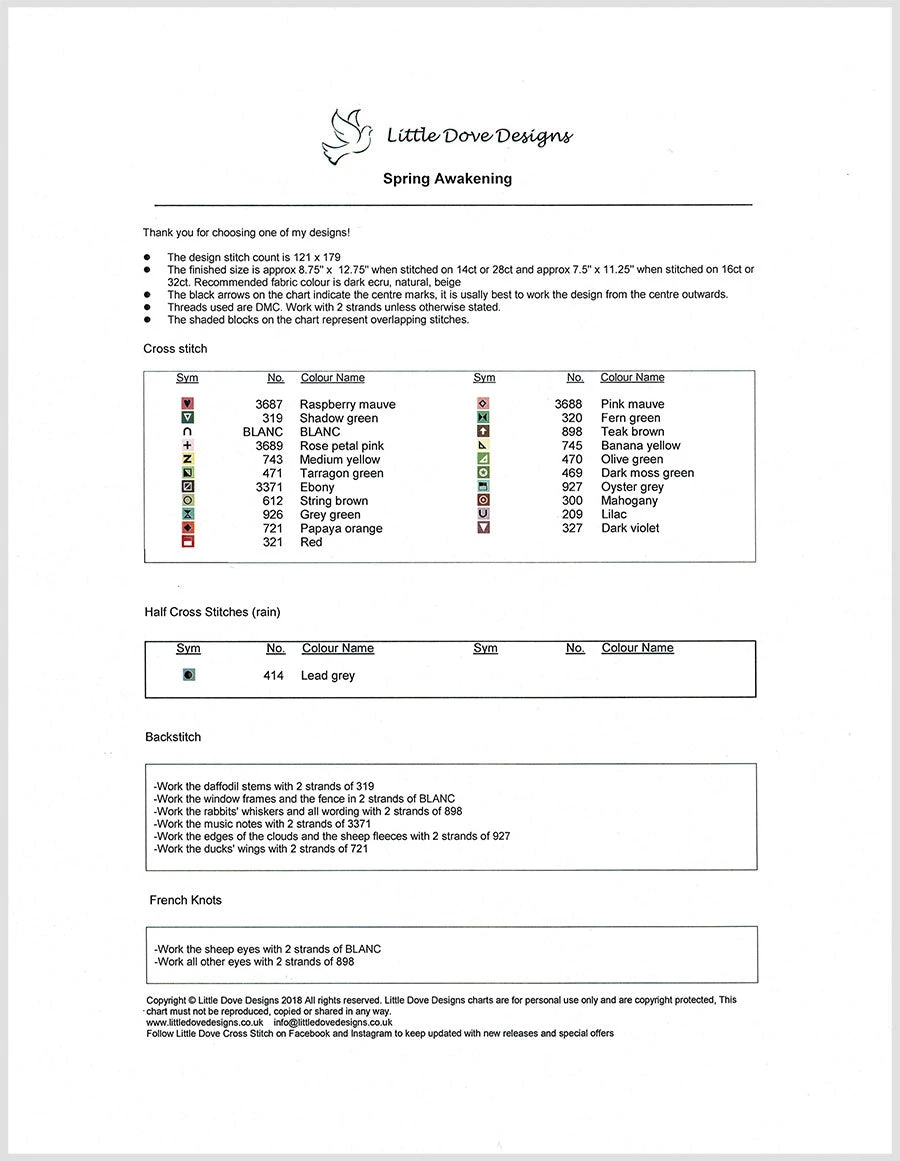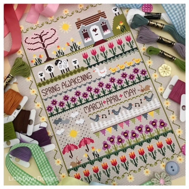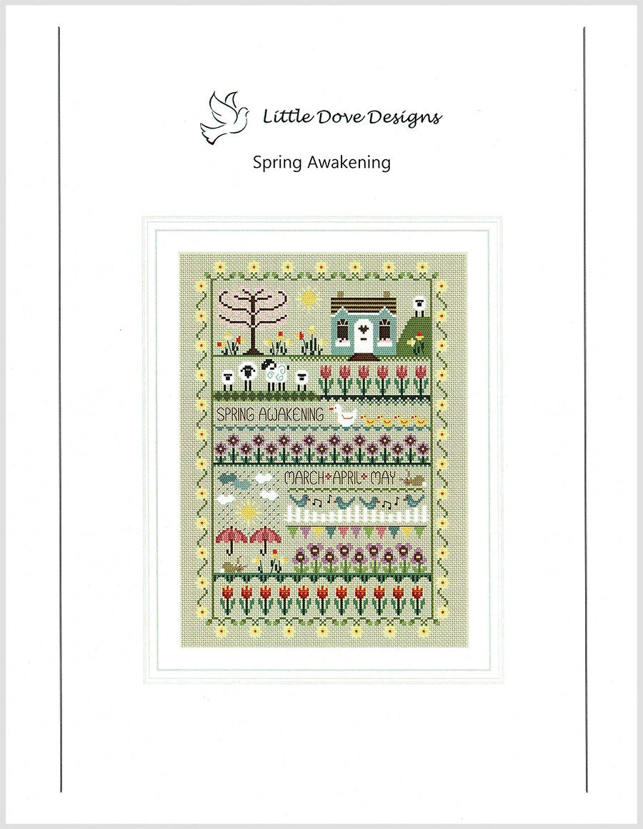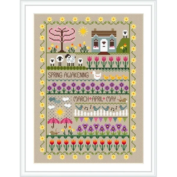 Celebrate spring with this sampler-style pattern by UK-based Little Dove Designs. Stitch up a family of ducks, sheep, flowers, and even the inevitable springtime rain.