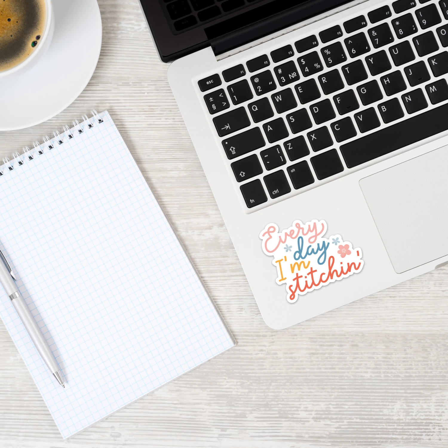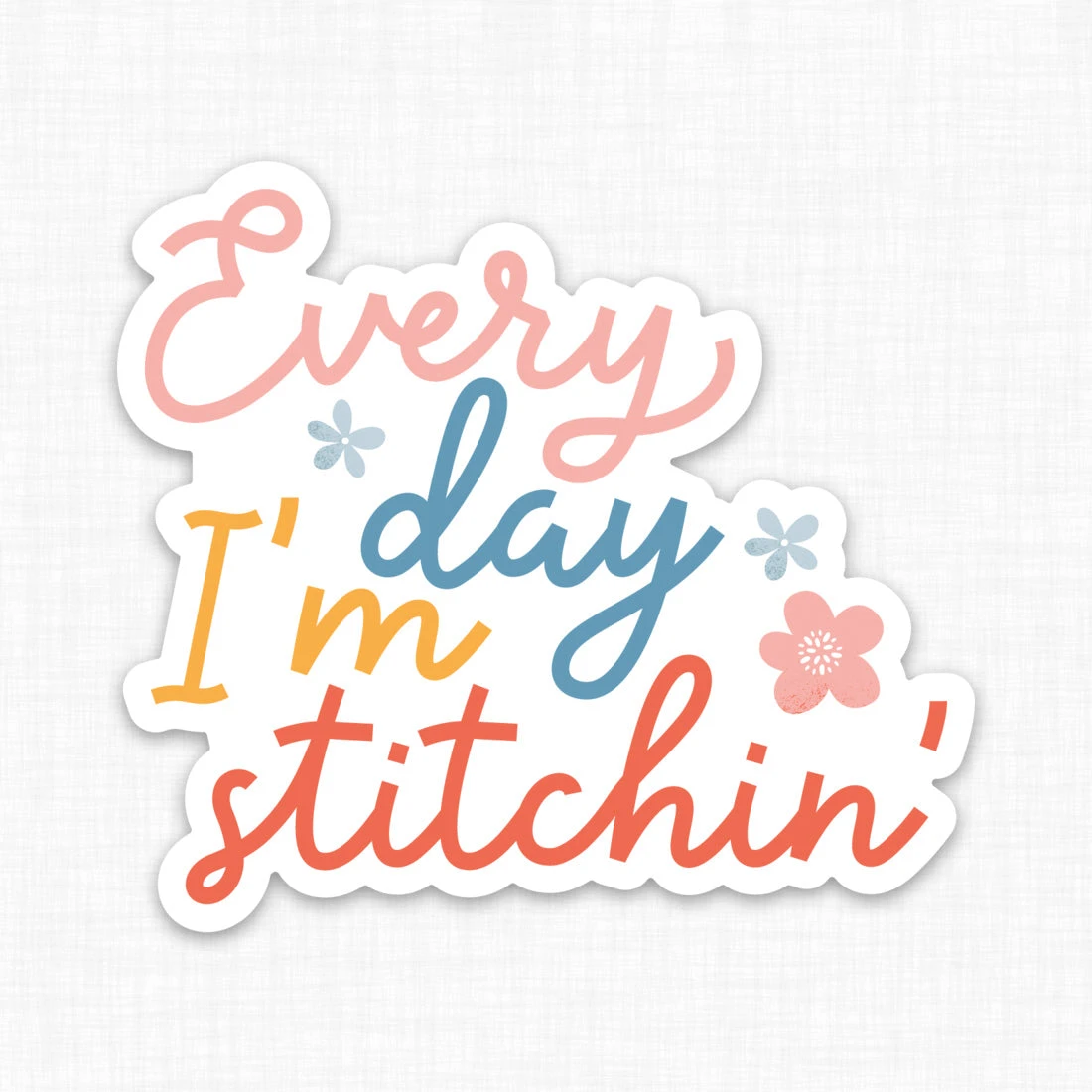 Show your stitchy spirit with a fun and colorful sticker. This design features the words “Every day I’m stitchin’.” It’s the mantra we want to live by!