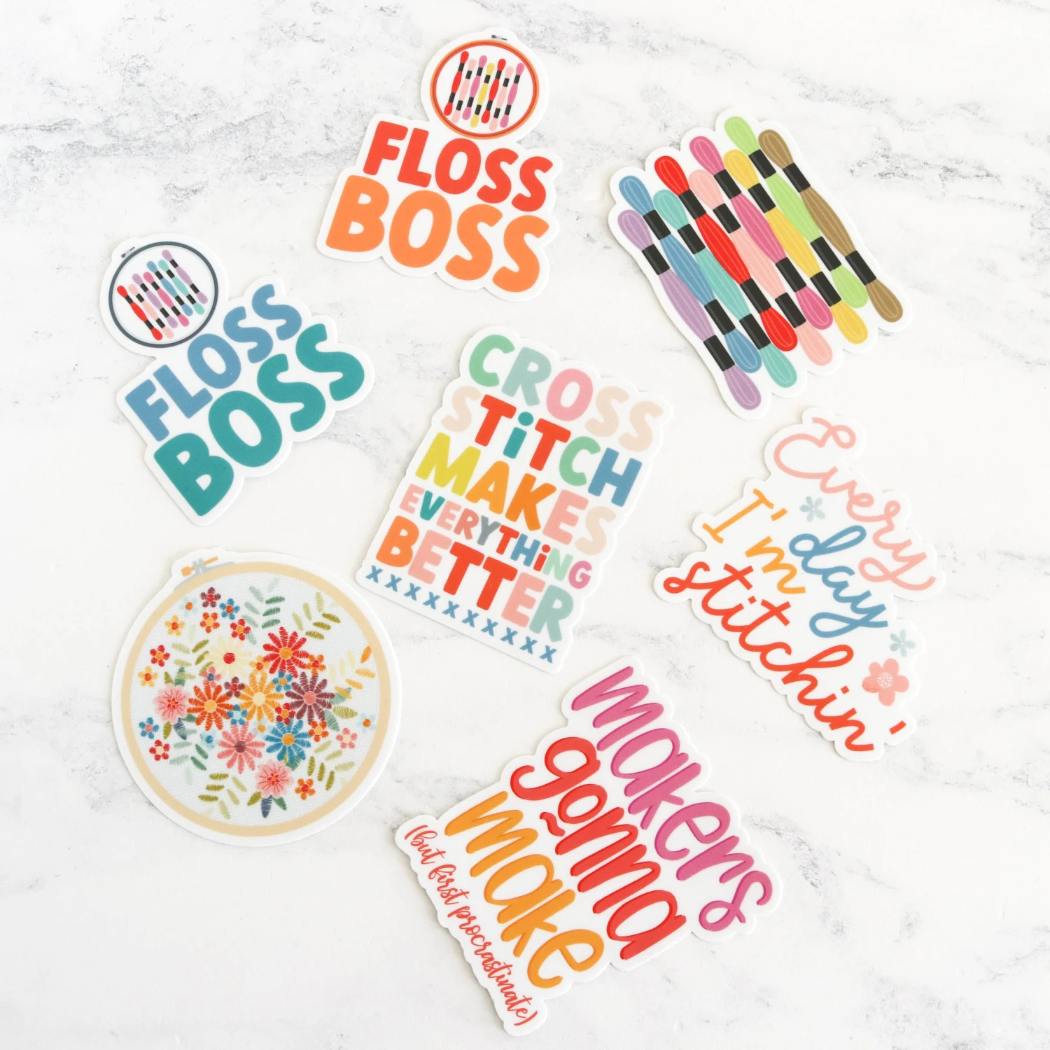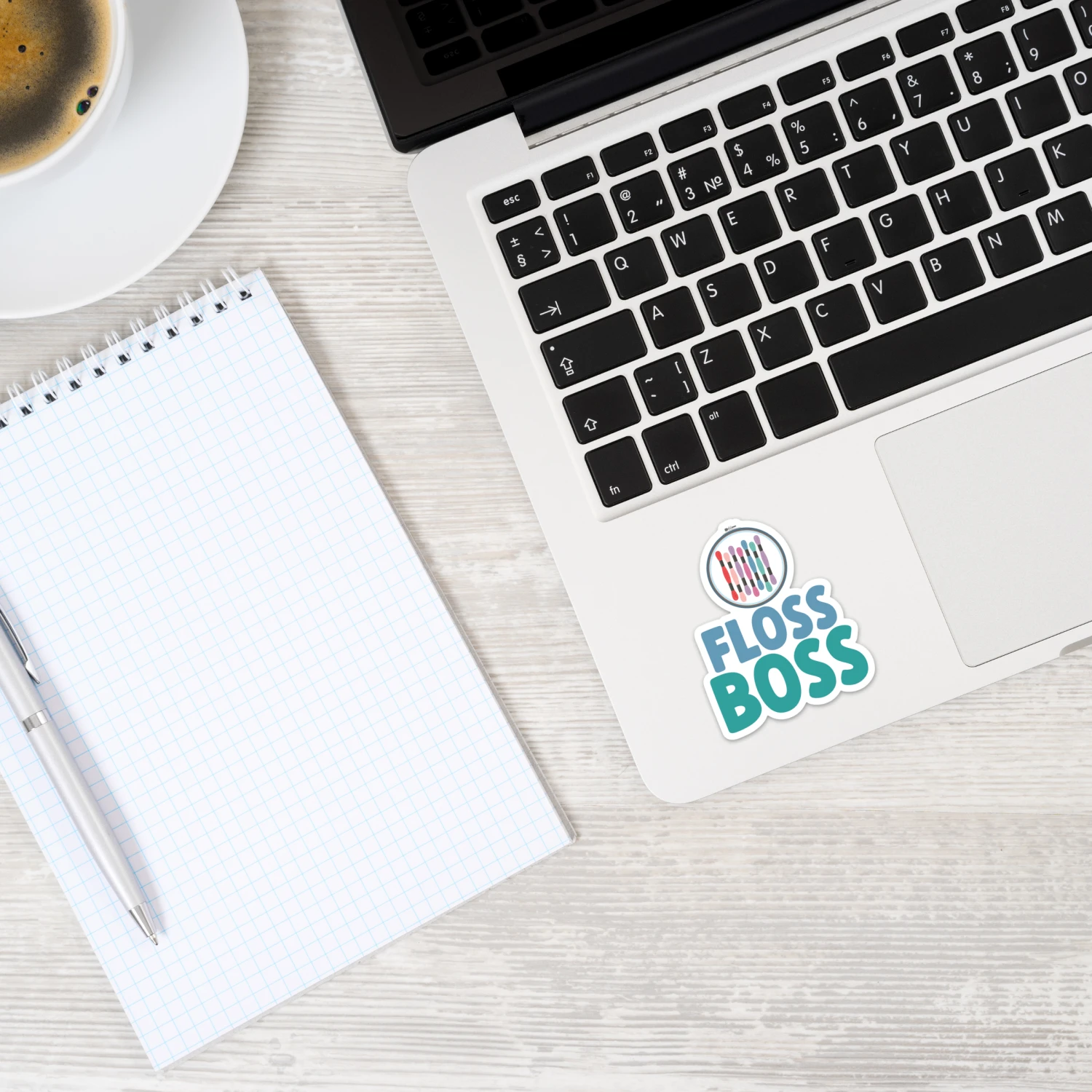 Show your stitchy spirit with a fun and colorful sticker! With this design – available in either blue or orange – declares you the Floss Boss you know you are.