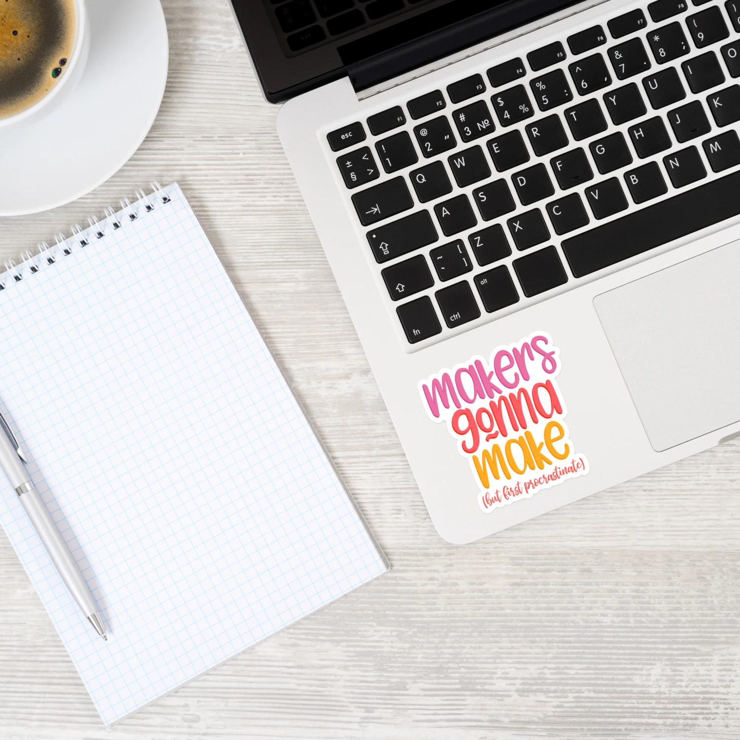 Show your stitchy spirit with a fun and colorful sticker! This design features the words “Makers gonna make (but first procrastinate),” because … yes.