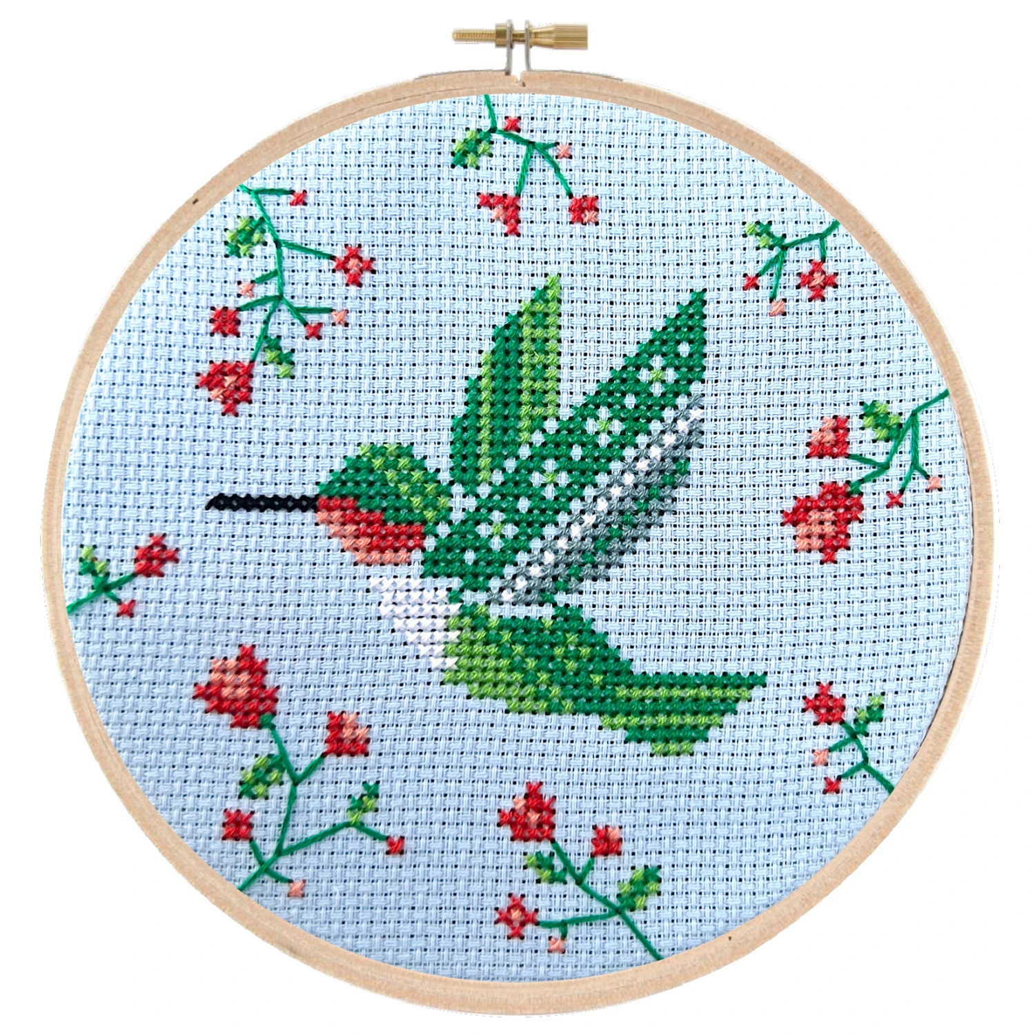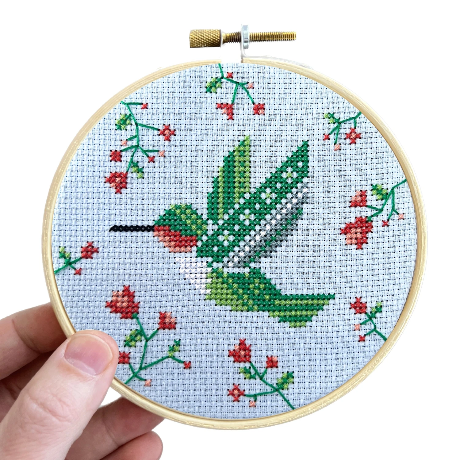Model was framed in a 5-inch wood embroidery hoop (sold separately)