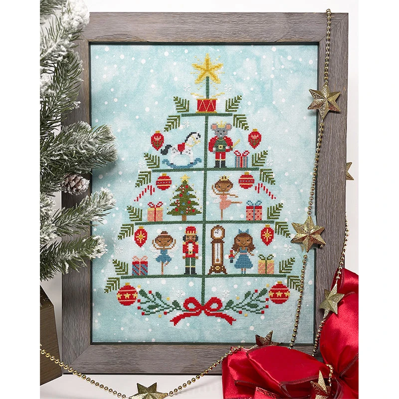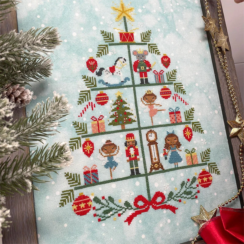 This festive Christmas cross stitch design by Tiny Modernist features a tree full of characters from the Nutcracker ballet. Stitch your way through Clara, the Nutcracker, the Sugar Plum Fairy, the Mouse King and more!