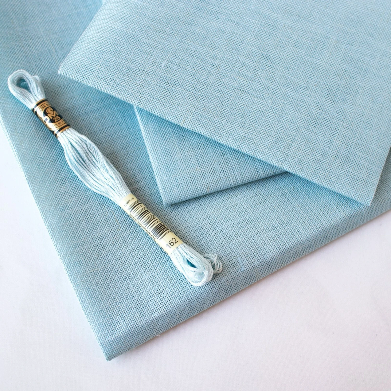 Linen has a beautiful drape and open weave that is perfect for cross stitch and embroidery. This Touch of Blue linen is the equivalent of DMC embroidery floss color #162. The linen is stiff to start, but will soften up as you work with it.