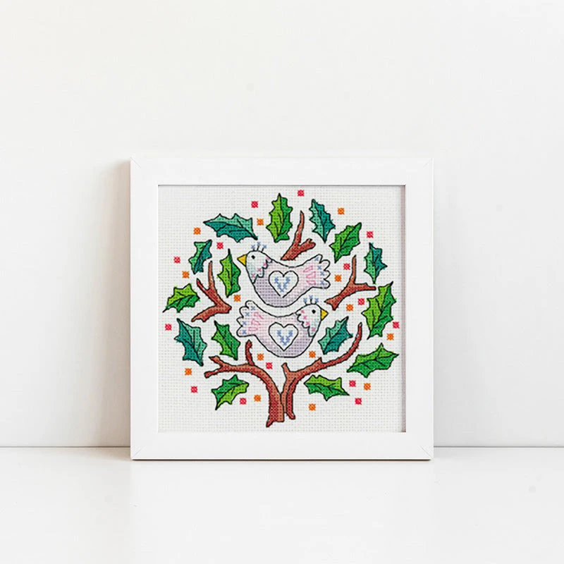 This charming Two Turtle Doves counted cross stitch kit is based on the work of UK-based artist and printmaker Karen Carter. Stitched on Aida fabric, the kit comes with everything you need.