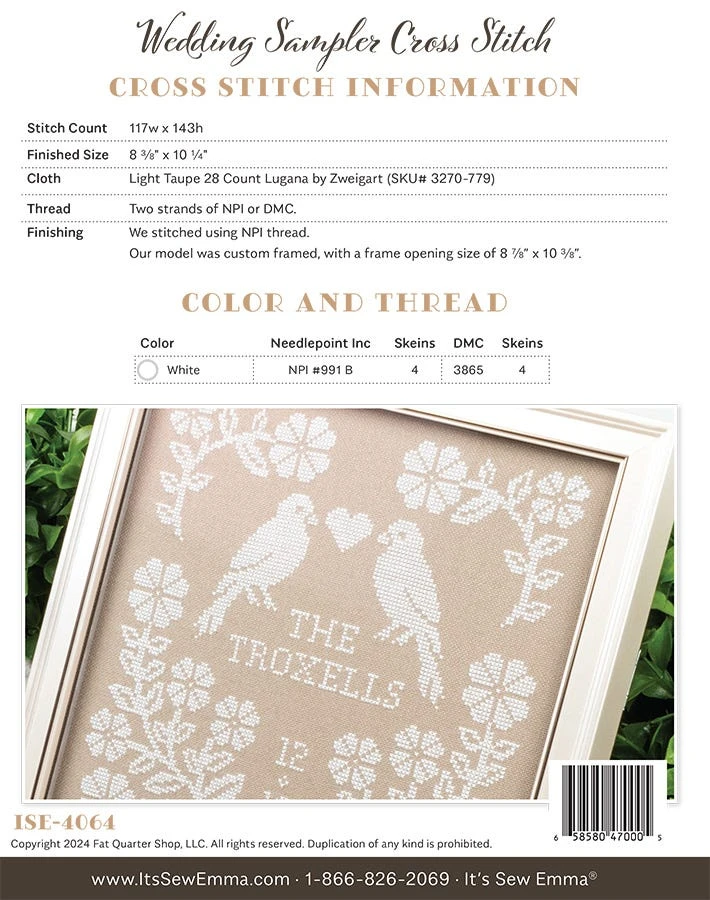 Stitch an elegant and thoughtful wedding sampler with this counted cross stitch pattern by It’s Sew Emma. It would also make a lovely anniversary gift.